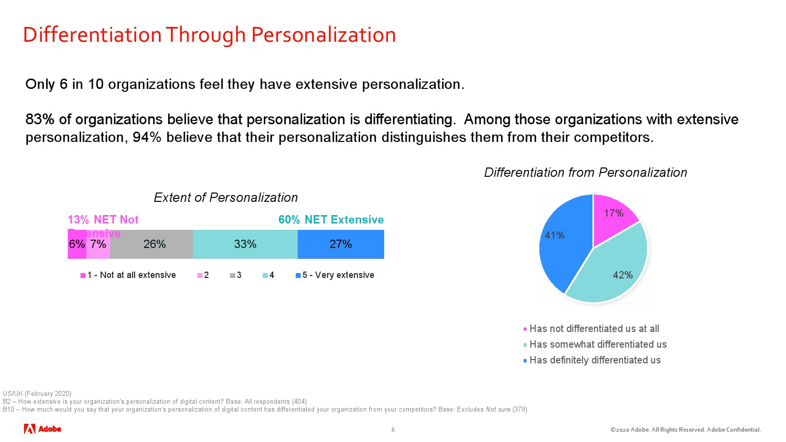 Adobe发布了“2020年个性化报告”。在数字体验方面,尽管83%的企业认为个性化使他们有别于竞争对手,但只有60%的企业认为他们拥有广泛的个性化能力。