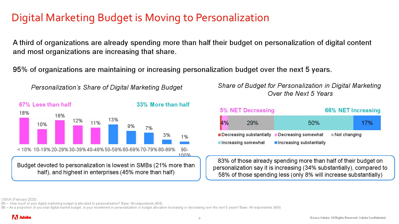 33%的企业将超过一半的数字营销预算用于个性化。