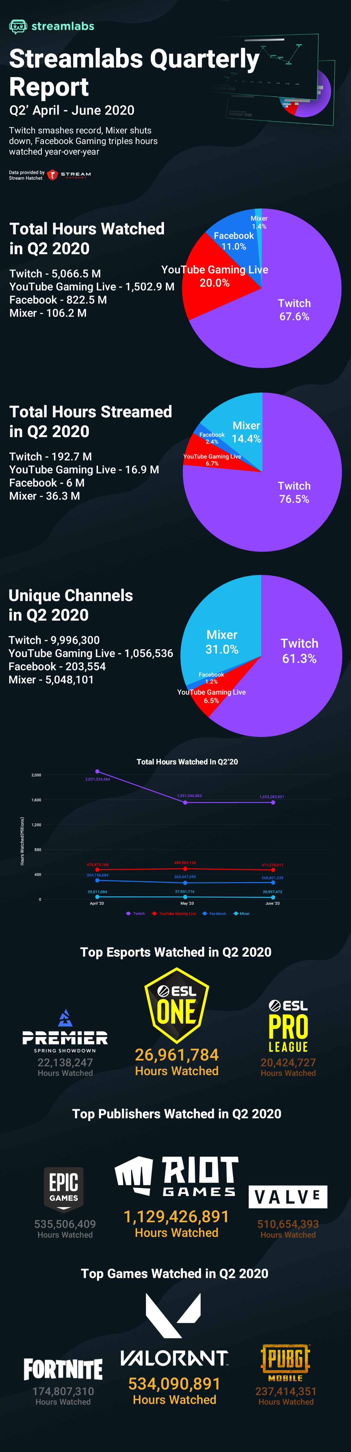 2020年第二季度,Streamlabs通过仔细研究了每个直播平台的增长情况,以及Mixer的关闭可能会对该行业产生的影响。
