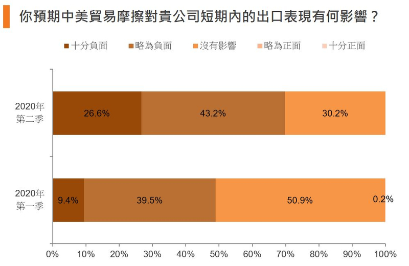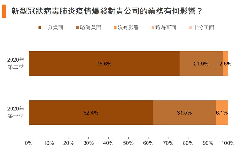 - 由于新冠肺炎疫情持续,约97.5%出口商都承认业务遭受负面影响,比率较2020年第一季增加3.6个百分点。