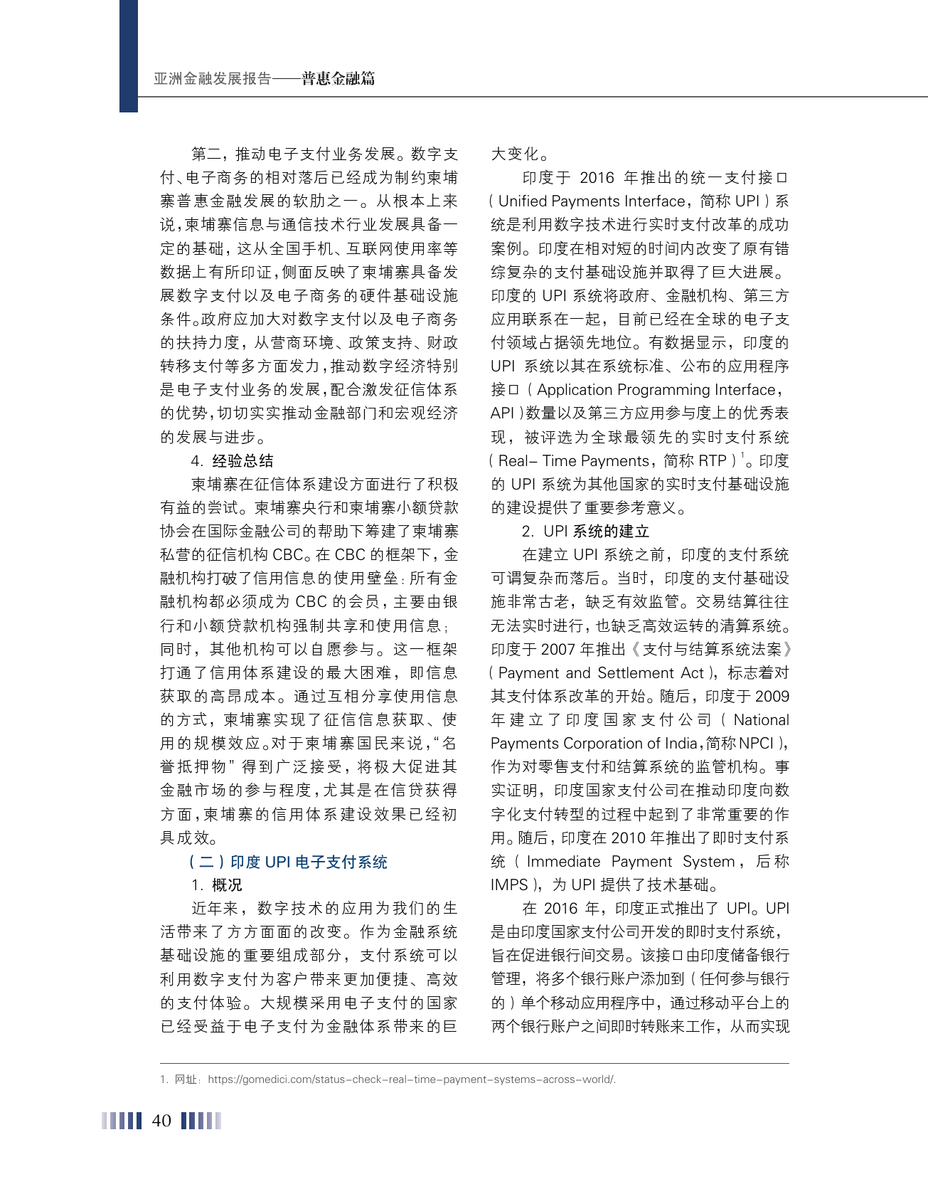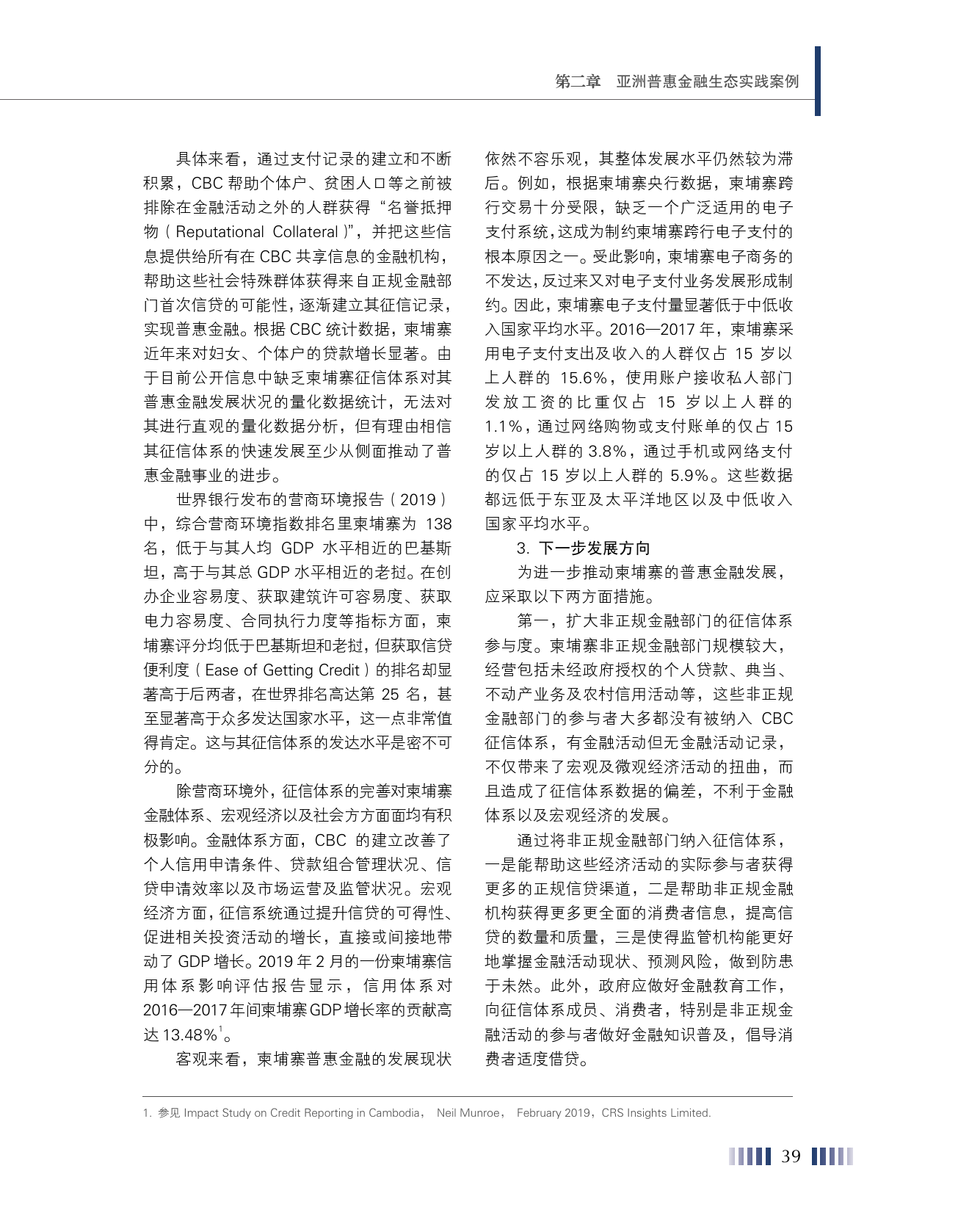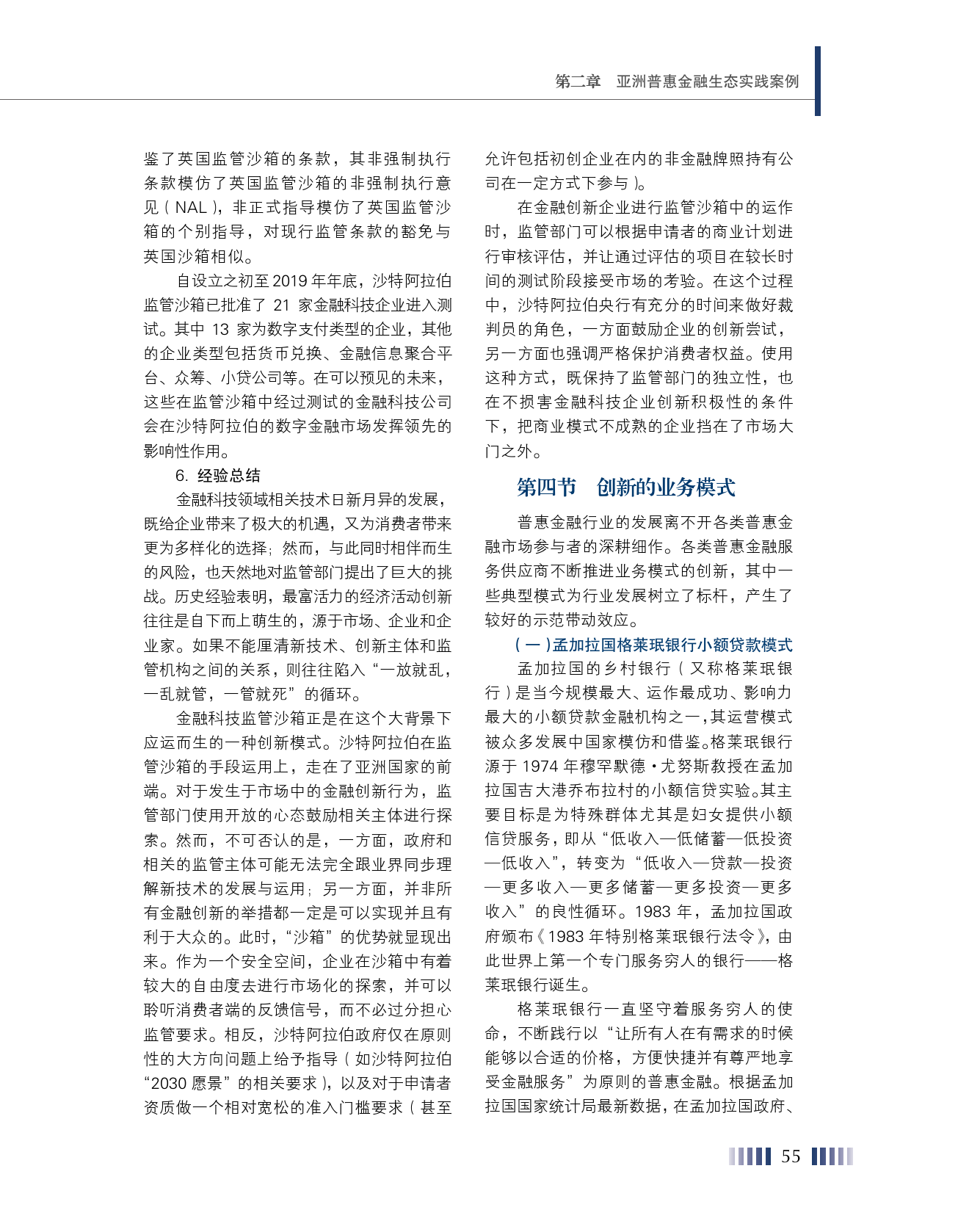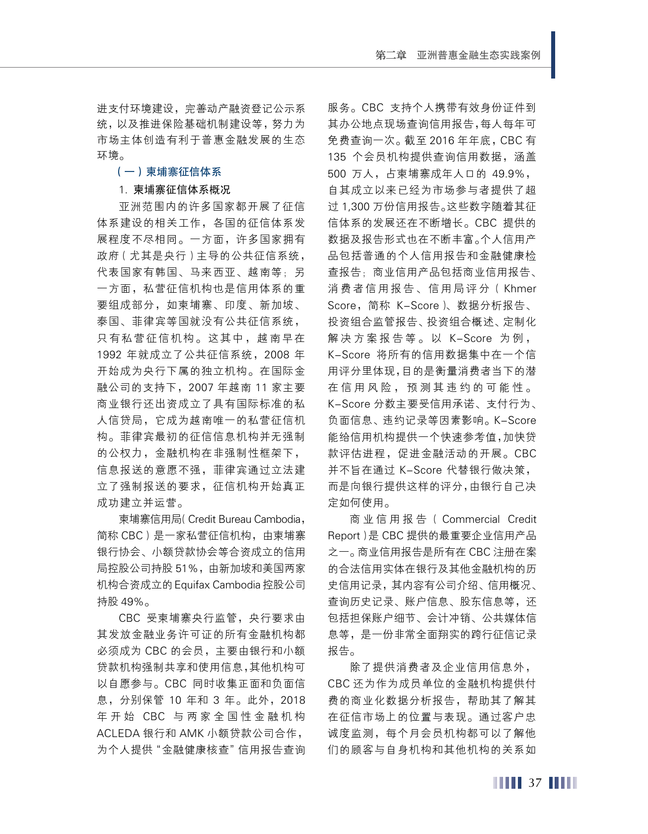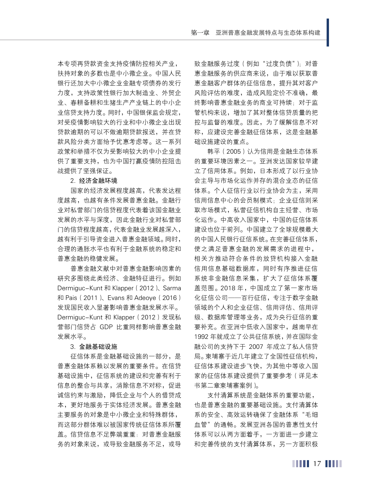 报告从普惠金融生态体系的视角梳理了亚洲各国普惠金融发展经验,如中国在国家战略、货币信贷、财税政策、治理框架和机构能力等方面为普惠金融发展作出的努力,柬埔寨在全国性征信体系建设方面取得的成就,蒙古国与韩国在金融消费者素养、普惠保险服务、消费者保护领域作出的努力和取得的显著效果等。