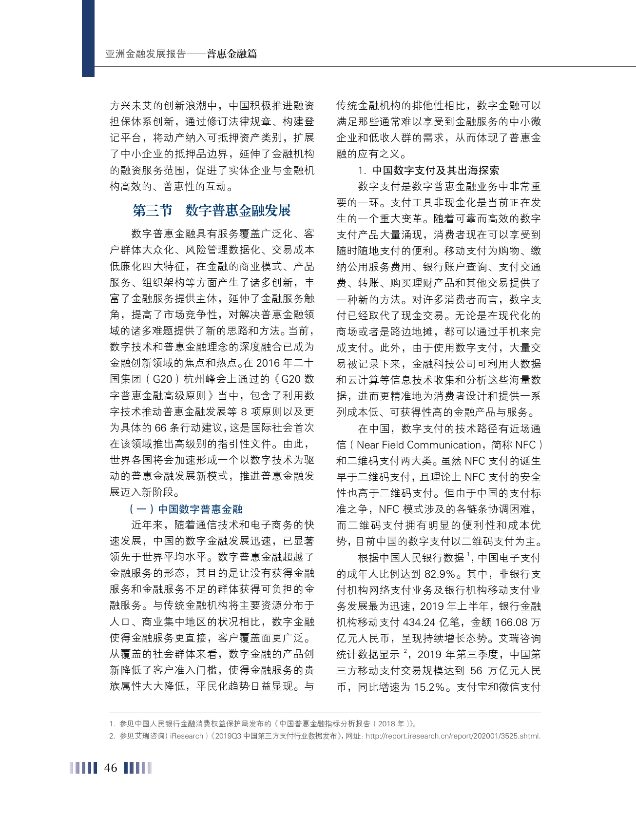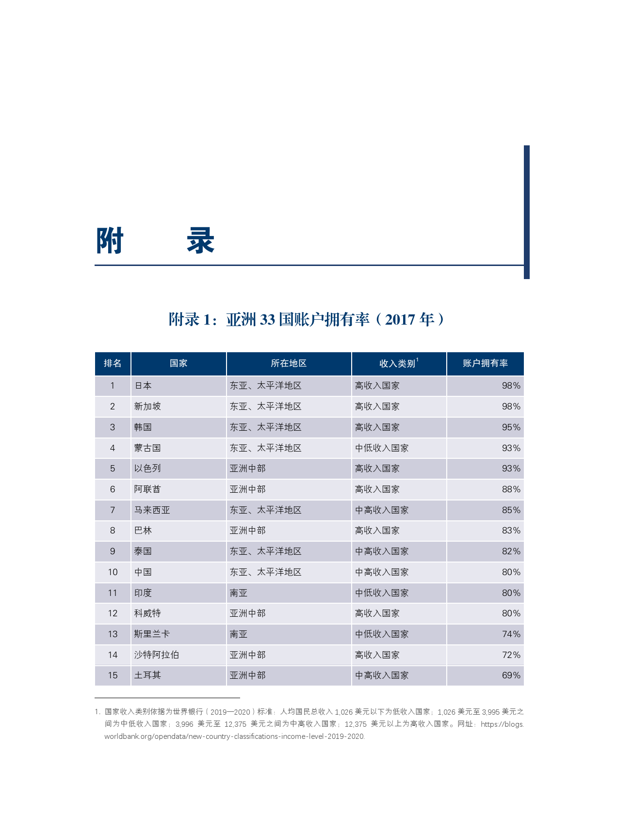 此外,报告还建议亚洲各国构建健康的数字普惠金融生态体系;鼓励监管部门主动利用“监管沙箱”寻求技术创新与风险管理的平衡之道;遵循《G20数字普惠金融高级原则》,关注数字安全、数字鸿沟、消费者保护等问题;加强亚洲地区普惠金融的交流与合作,利用好“一带一路”倡议等区域和全球化动议带来的各国协同发展机会,充分发挥国际机构促进跨国交流、经验共享的作用。