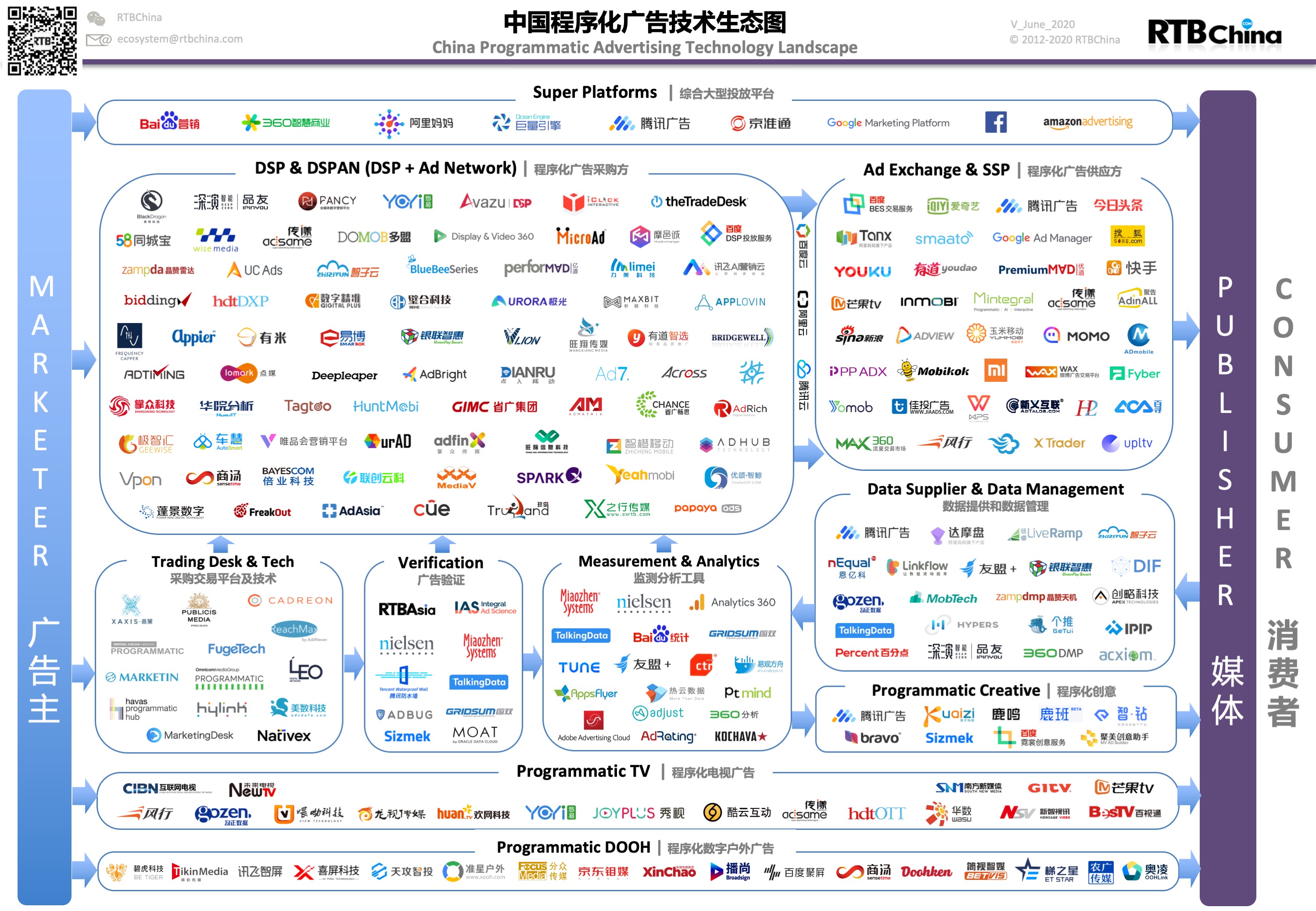本生态图在2019年中版本的基础上,对于主动告知RTBChina其业务已经终止的公司,以及通过研究观察判断其业务已经终止或转型的公司的产品图标进行了移除。曾经拥挤的某些版图已经不再拥挤。对于继续发展业务并不断探索新方向的公司,我们相信,“所有杀不死你的将使你更强大”。