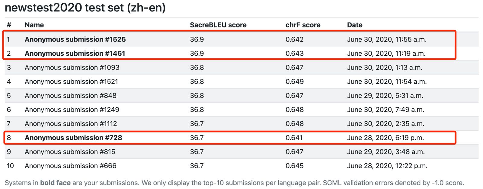 提交结果BLEU评分第一,微信AI斩获中英翻译方向冠军