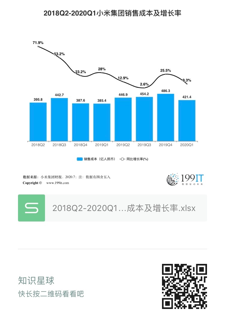 - 2019年Q1-2020年Q4小米集团销售成本及增长率(附原数据表)