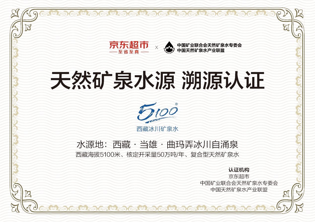 与往年不同,今年京东超市水饮节有了新动向:联合中国矿业联合会天然矿泉水专委会及中国天然矿泉水产业联盟(以下简称专委会)达成战略合作协议,携手推出国内首个电商平台销售天然矿泉水溯源认证方式,同时在京东超市设立官方天然矿泉水认证品牌线上推广专区,为消费者甄选天然矿泉水,直购品质好水。5100西藏冰川矿泉水以其独一无二的水源地优势及冰川矿泉的卓越品质,获得京东超市及专委会的联合认证,成为首批入驻天然矿泉水推广专区的品牌。