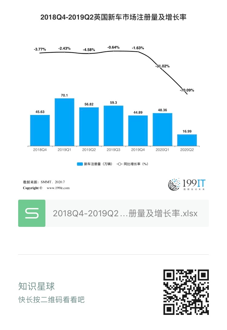 - 2019年11月-2020年7月英国新车市场注册量及增长率(附原数据表)