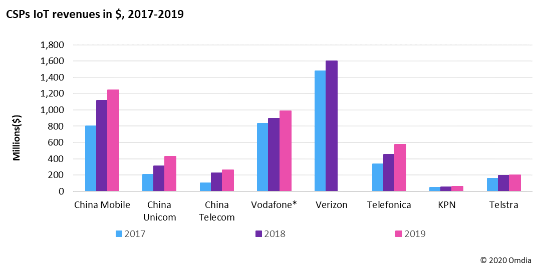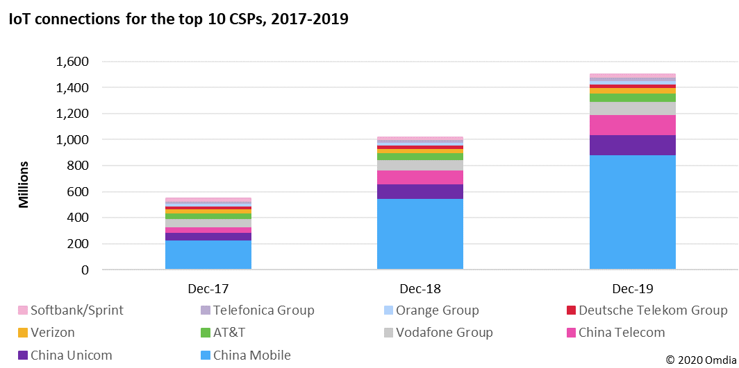 Omdia:2017-2019年电信运营商物联网业务KPI 电信运营商的物联网连接数:2017-2019年 如下表所示,从2017年到2019年,基于蜂窝网络的物联网连接数快速增长。从头部公司来看,它们在两年内增加了近十亿的连接数。然而,世界其它地区与中国的差距很大。截至2019年12月,中国的物联网连接数接近12亿,相当于运营商(公开宣布的)物联网连接总量的77%。 来源:Omdia 电信运营商的物联网收入和ARPU:2017-2019年 虽然许多运营商公开披露了它们的物联网连接数,但却没有公开披露收入。只有少数运营商披露了物联网收入;而且即便是那些披露了物联网收入的运营商,有许多现在也开始从财务报表中删除这一KPI(比如Verizon和沃达丰)。下表列出了披露物联网收入的运营商。我们可以看到,尽管用户数量是最大的参与者中国移动的十五分之一,Verizon却在2018年创造了最多的物联网收入(16亿美元)。 来源:Omdia 从2017年到2019年,物联网收入持续增长,但这主要由于连接数增长带动。随着连接量增加,大多数运营商的物联网ARPU被稀释。这是因为早期M2M/IoT连接中有很大一部分属于高价值的汽车和车队管理连接。然而,伴随市场走向成熟以及更多的低功耗、低带宽连接出现,整体收入降低,从而稀释了ARPU。这证明数量是物联网收入增长的关键,规模非常重要。从图表中我们可以看到,在所有披露物联网收入的运营商中,澳洲电信的ARPU最高,在2019年的平均ARPU为5.41美元/月,而同期中国移动仅为0.15美元/月。西班牙电信是唯一一家ARPU没有被稀释的运营商–该公司的ARPU从2017年的1.8美元增加到2019年的2.25美元。这是因为西班牙电信并不那么注重推动物联网连接数大量增长,但非常关注其“连接+”模式,即超越连接提供物联网解决方案–主要专注于智慧出行(车队/物流/联网汽车)以及智慧城市、零售和工业领域。 来源:Omdia 更多阅读:Omdia:2023年电信运营商全球服务展望M2M与物联网:电信运营商的机遇Omdia:2025年智能城市AI软件收入达49亿美元Omdia: 2019年全球物联网领域重要投资总结Omdia:预计物联网设备总出货量将在2030年超越180亿电信运营商资本支出分析:营收现状与资本强度策略探索元宇宙:电信运营商的机会Arieso:智能手机用户消费的流量高于平板电脑Omdia:展望电信运营商与云服务提供商的合作前景Infonetics Research:预计2012年全球电信运营商收入达到1.9万亿美元Omdia观察:全球经济衰退对电信运营商来说意味着什么?Omdia: 电信运营商整合取得进展,过去五年并购交易超过 500 宗2024年数字消费者洞察——电信运营商捆绑增值服务、家庭安全以及生成式AITotaltele:2012年全球电信运营商Top 20电信运营商的中层危机