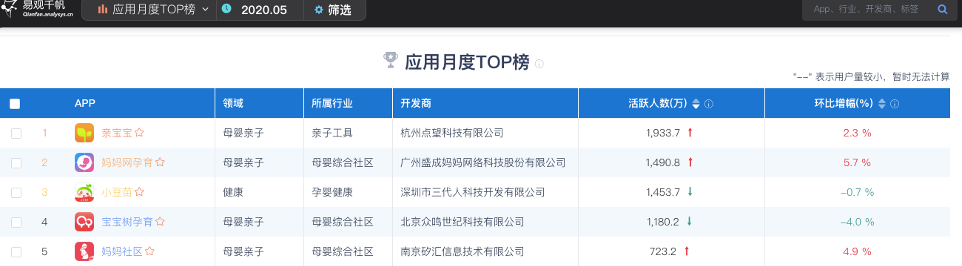亲宝宝作为国内领先家庭育儿平台,通过核心产品功能“宝宝成长记录”链接5000万年轻家庭,上传照片总量已超过90亿,打造了全新家庭育儿场景品牌。凭借强大的产品力,亲宝宝在2020年1-6月,新增用户同比增长超50%,消费用户同比增长超100%,DAU、MAU连续两年领跑行业,成为唯一月活超过2000万的母婴APP。