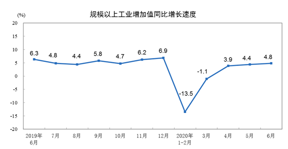 2020年6月份规模以上工业增加值增长4.8%