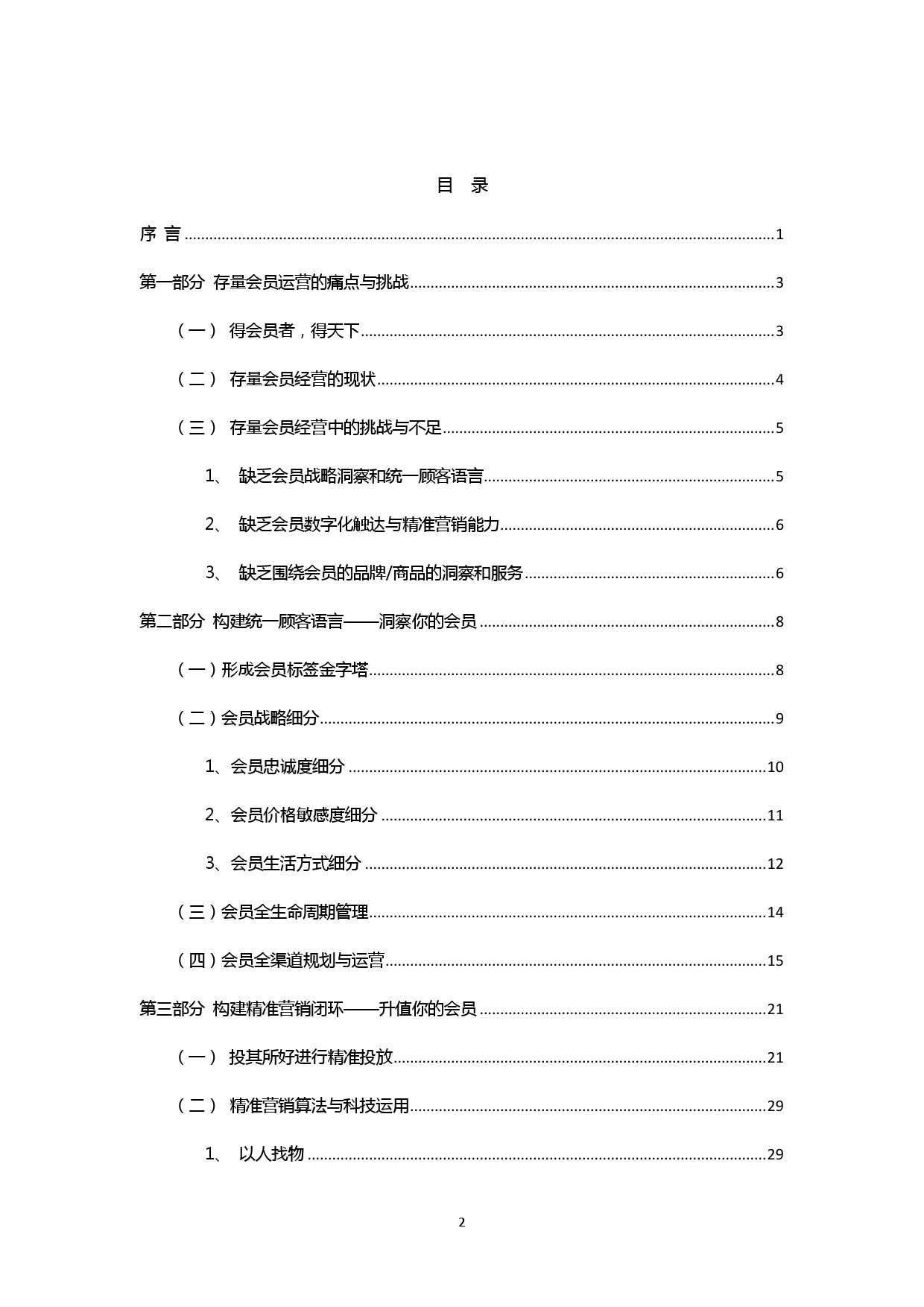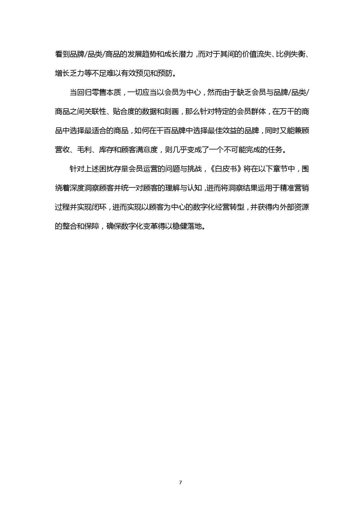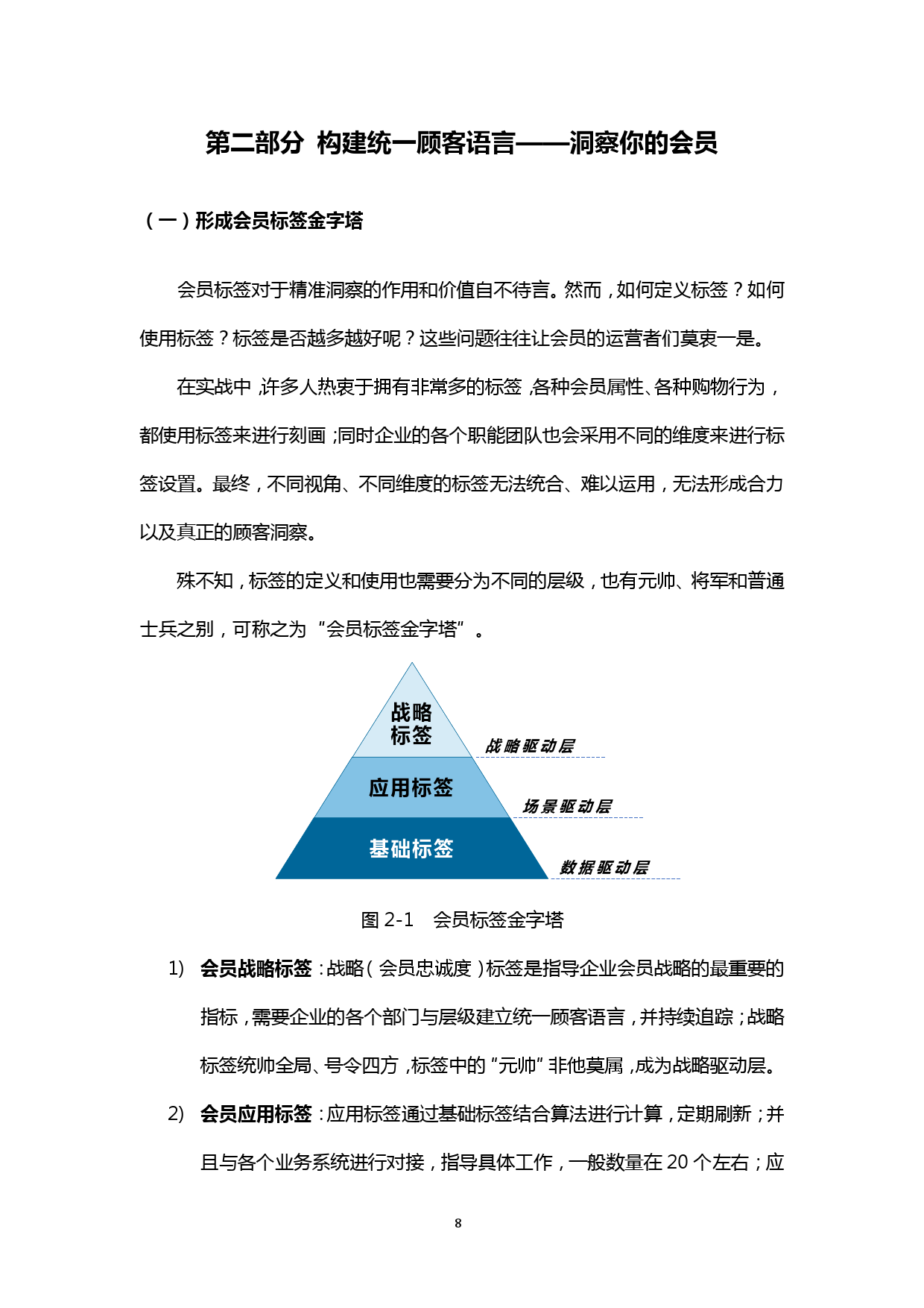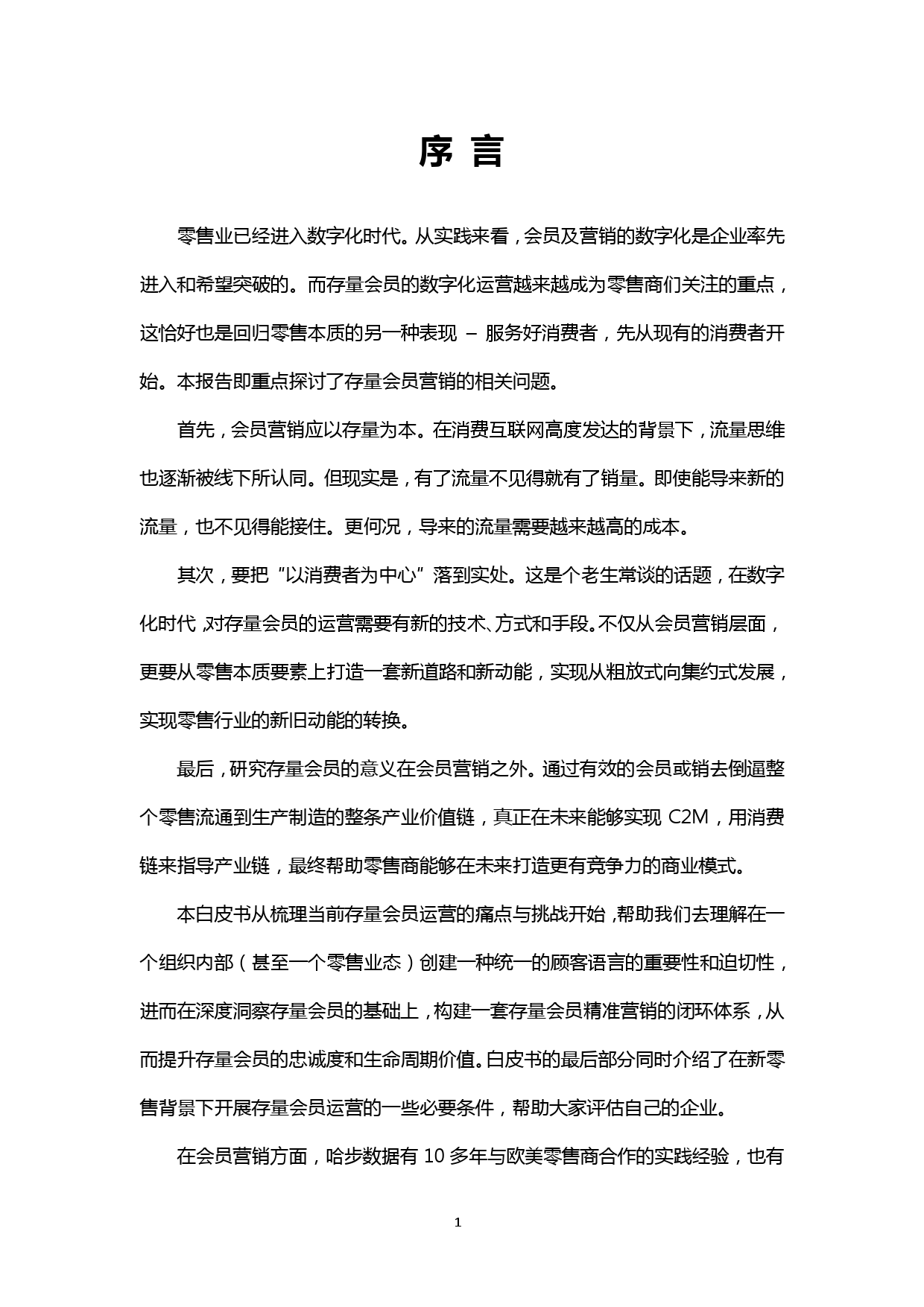 本白皮书从梳理当前存量会员运营的痛点与挑战开始,帮助我们去理解在一个组织内部(甚至一个零售业态)创建一种统一的顾客语言的重要性和迫切性,进而在深度洞察存量会员的基础上,构建一套存量会员精准营销的闭环体系,从而提升存量会员的忠诚度和生命周期价值。白皮书的最后部分同时介绍了在新零售背景下开展存量会员运营的一些必要条件,帮助大家评估自己的企业。