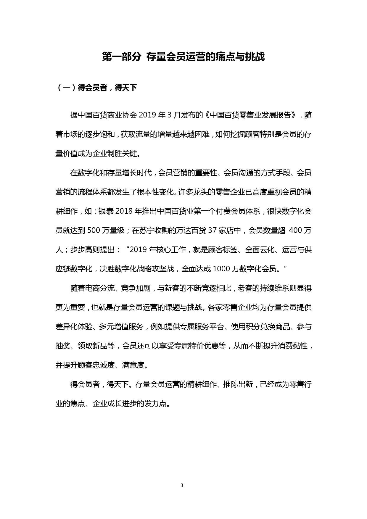 零售业已经进入数字化时代。从实践来看,会员及营销的数字化是企业率先进入和希望突破的。而存量会员的数字化运营越来越成为零售商们关注的重点,这恰好也是回归零售本质的另一种表现– 服务好消费者,先从现有的消费者开始。本报告即重点探讨了存量会员营销的相关问题。