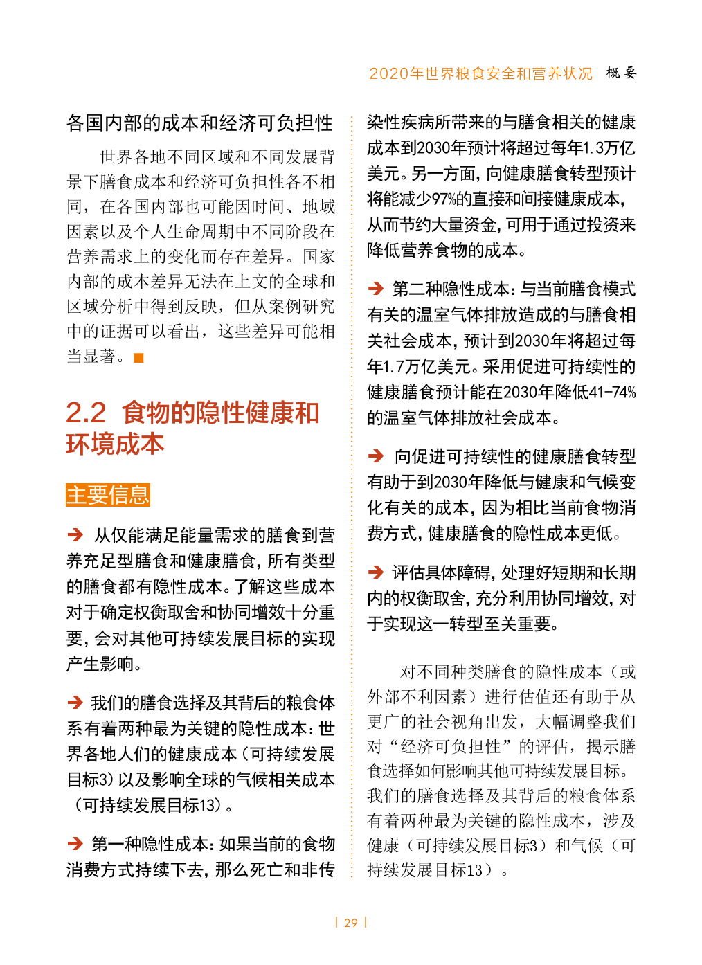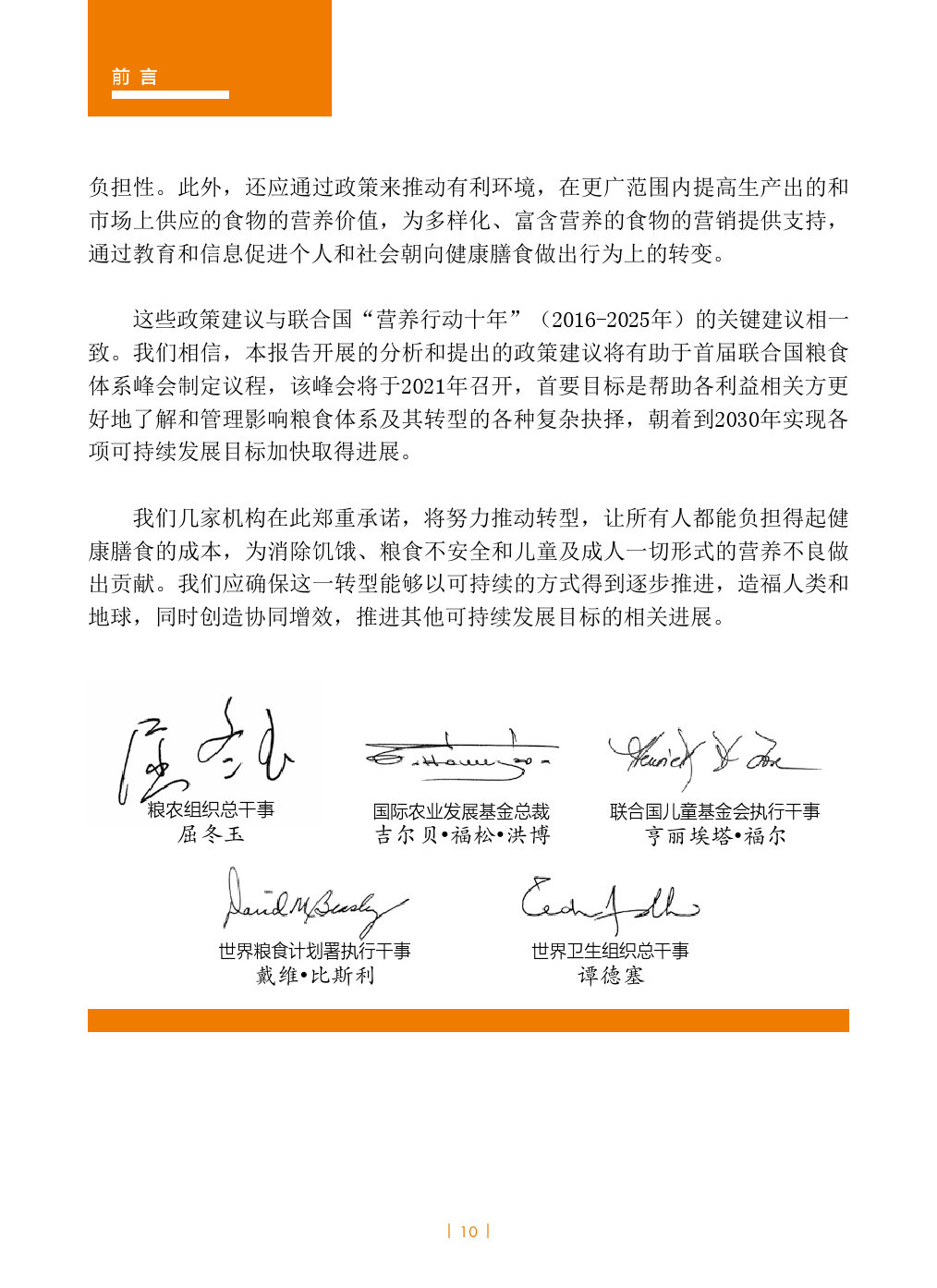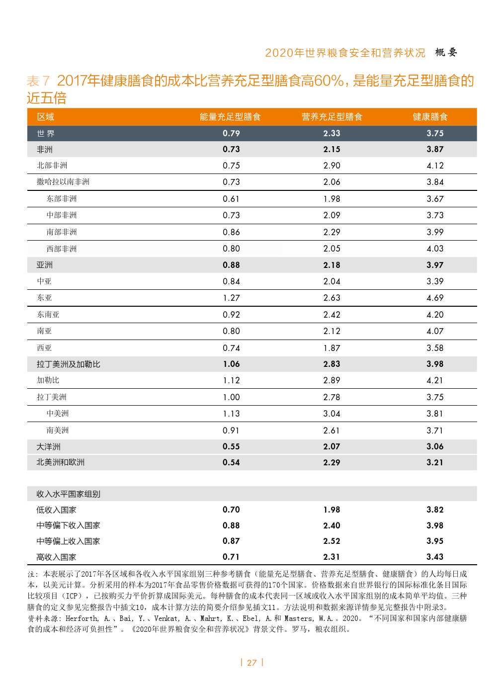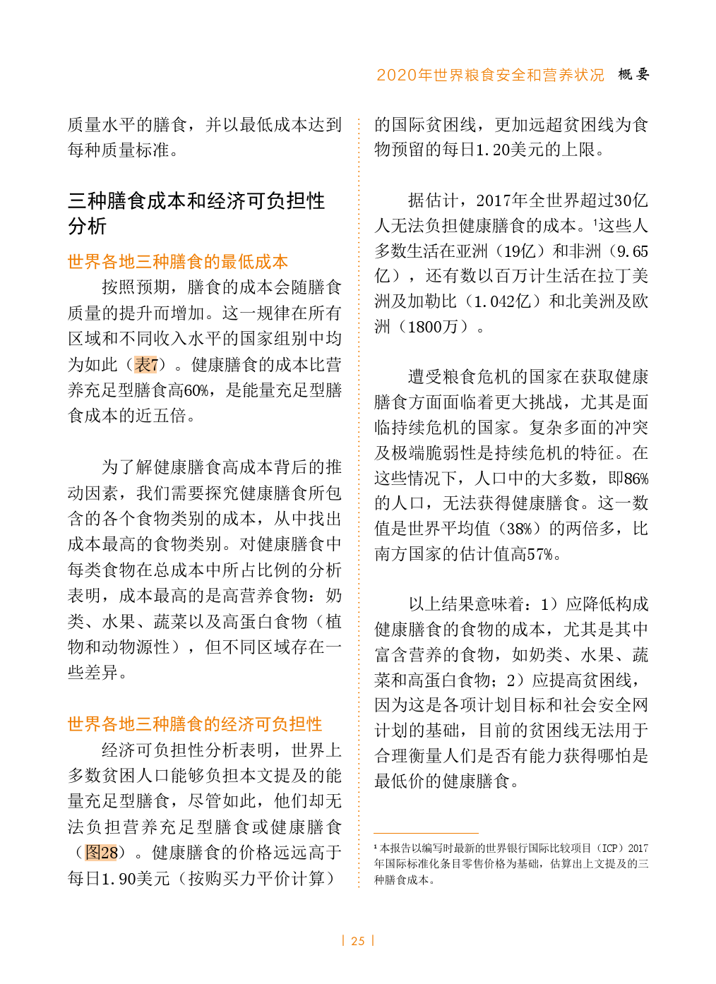 报告除了对粮食安全和营养状况进行常规评估外,还增加了在假设过去十年趋势持续不变的情况下,对 2030 年世界前景的预测。发布报告的五家机构负责人指出,距离在2030年实现零饥饿、结束粮食不安全状况及各种形式营养不良的目标仍然遥远。