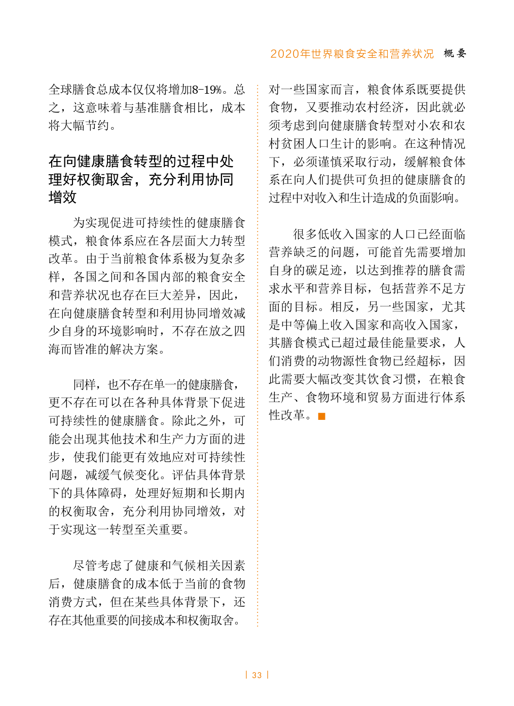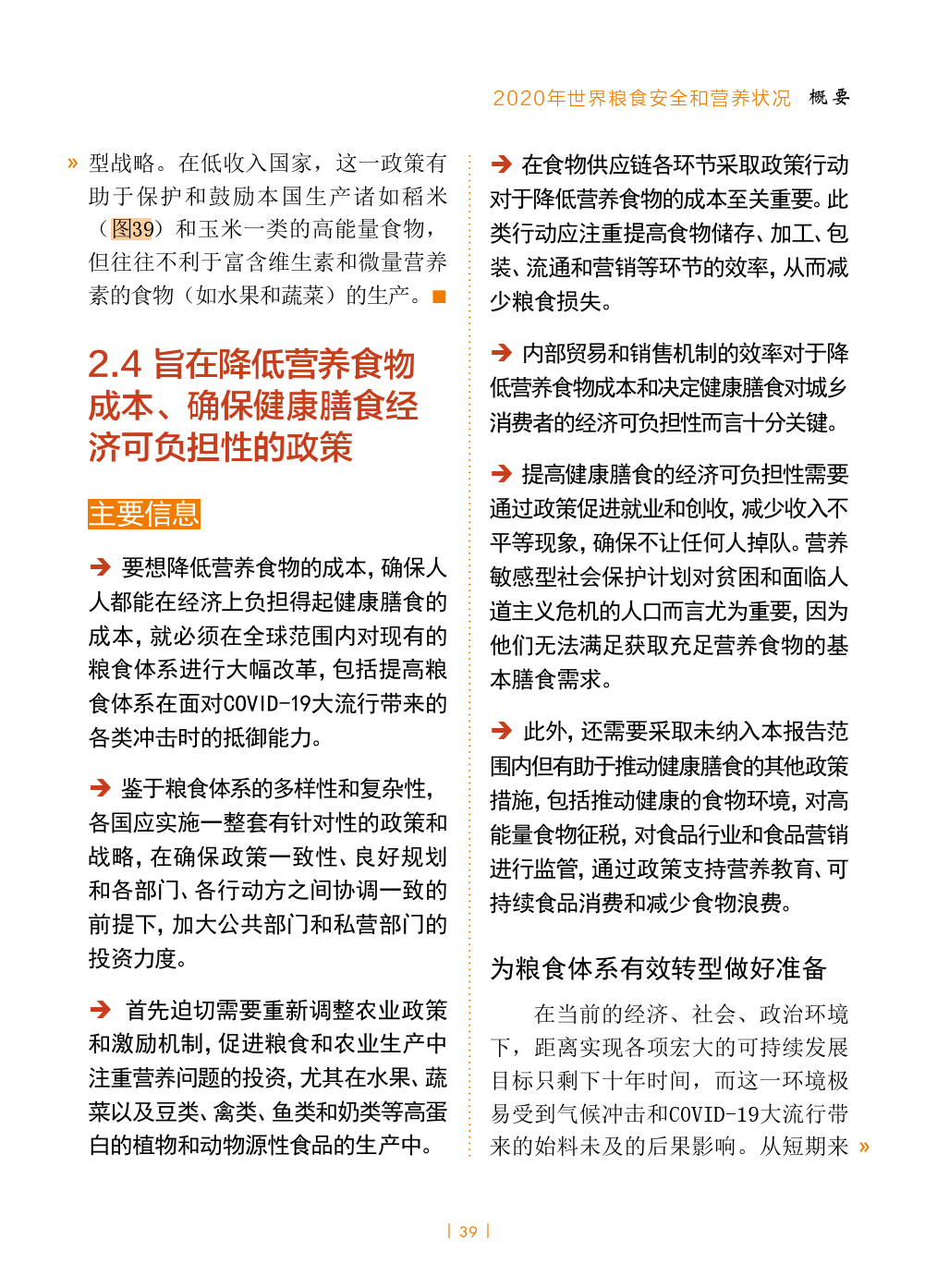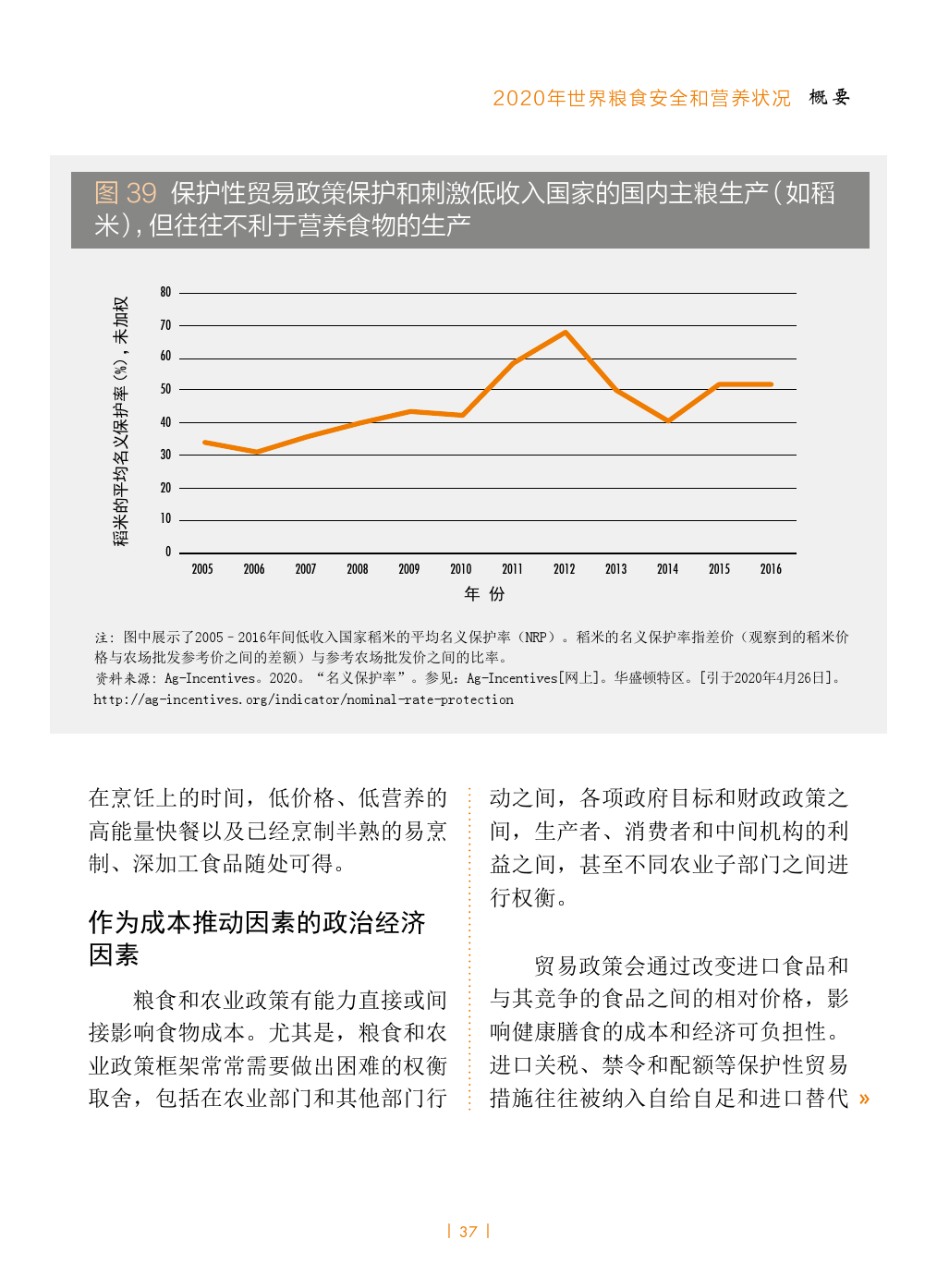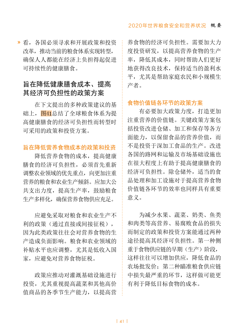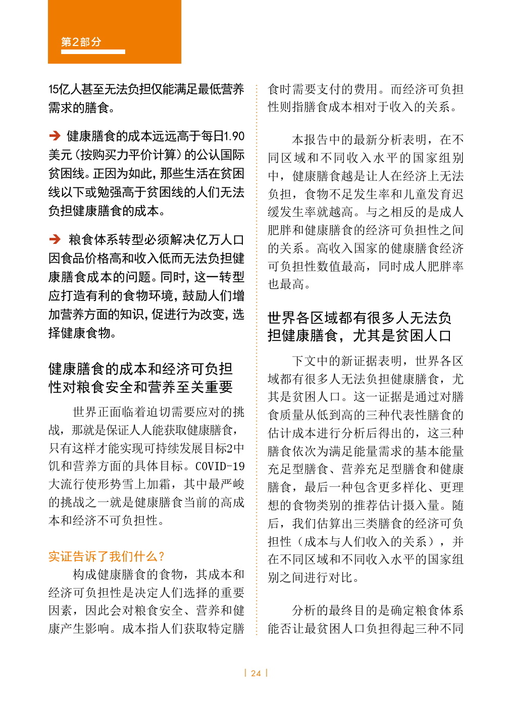 报告除了对粮食安全和营养状况进行常规评估外,还增加了在假设过去十年趋势持续不变的情况下,对 2030 年世界前景的预测。发布报告的五家机构负责人指出,距离在2030年实现零饥饿、结束粮食不安全状况及各种形式营养不良的目标仍然遥远。