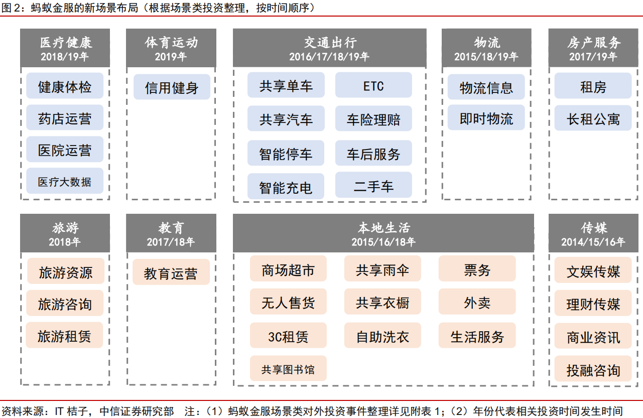 蚂蚁金服对支付场景的持续布局,主要通过对外合作与投资实现。