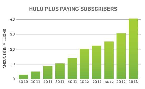 2013年5月1日早间消息,美国视频网站Hulu今日宣布,其付费订阅服务Hulu Plus用户突破400万。