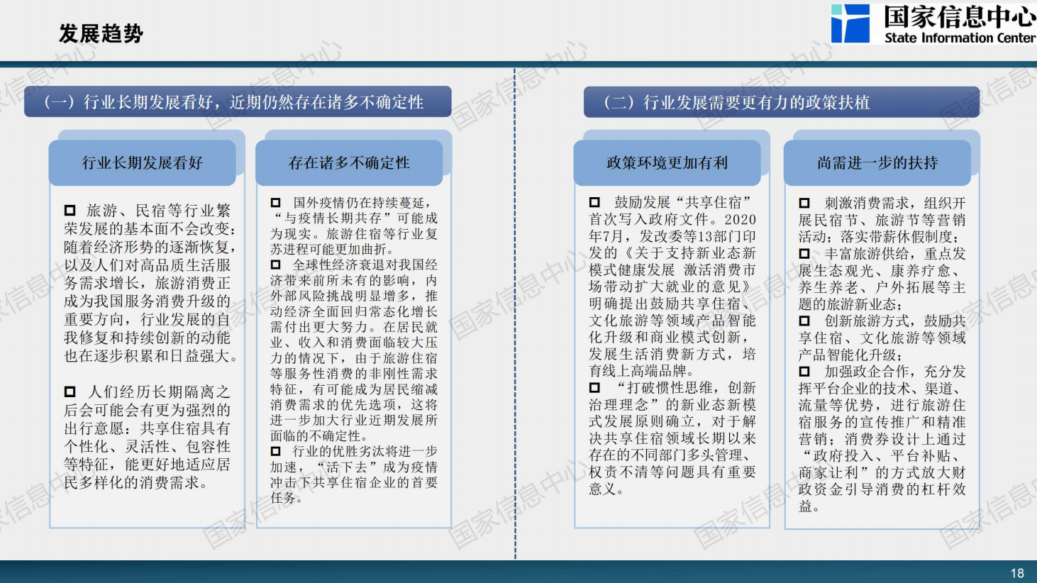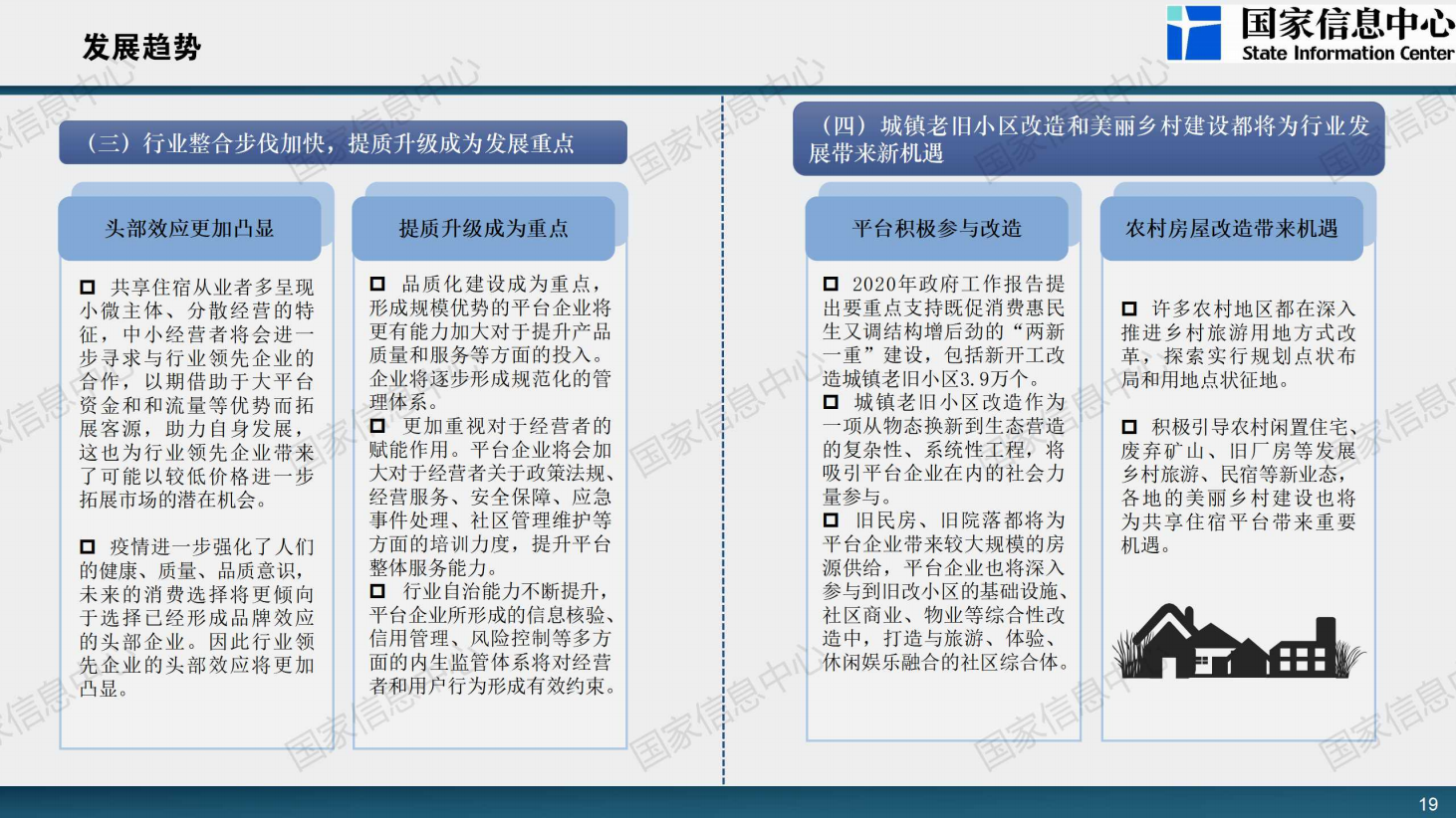报告称,从长期来看,共享住宿行业繁荣发展的基本面并不会因疫情而发生根本改变,城镇老旧小区改造和美丽乡村建设将为共享住宿行业发展带来新的机遇。