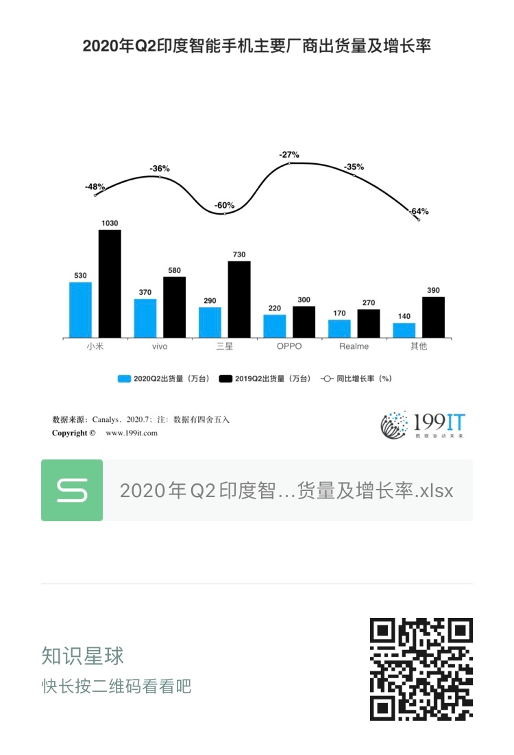 - 2019年Q1-2020年Q2印度智能手机主要厂商出货量(附原数据表)