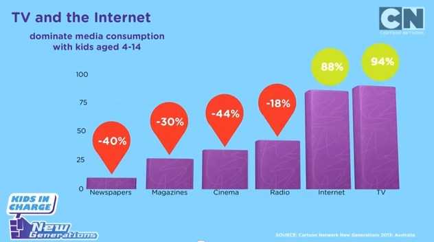 尽管app日益流行,电视仍然保持强劲,而且仍然是强劲的广告媒体。3/4的父母称他们跟孩子们一起在上周观看电视,6/7的人表示这是他们了解儿童需求的最佳方式。电视广告也是父母和儿童们了解新玩具,游戏,电影和技术的最佳方式。