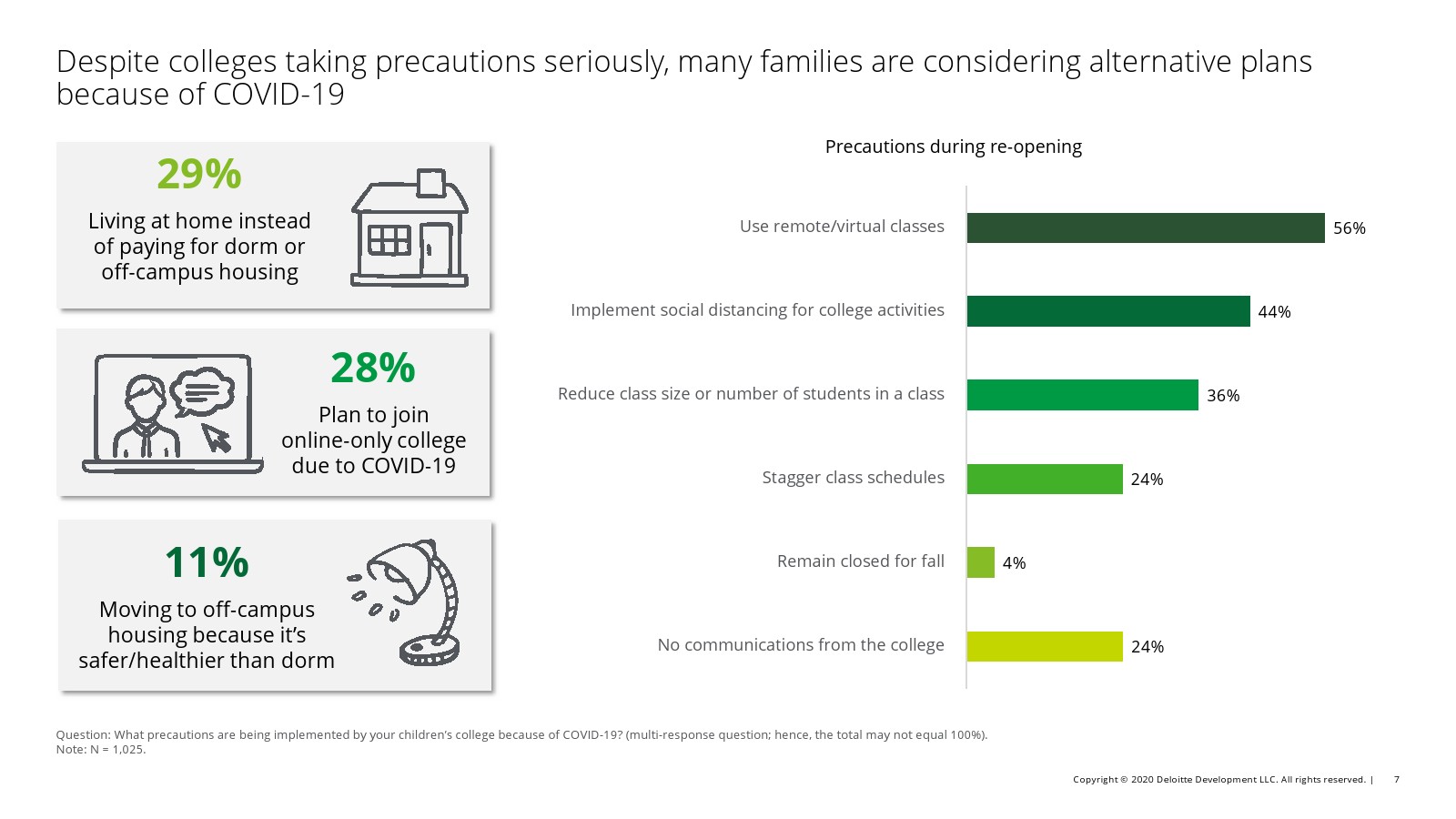 - 一些受访者考虑转到纯在线机构(30%);29%的受访者可能会改变计划,住在家里。