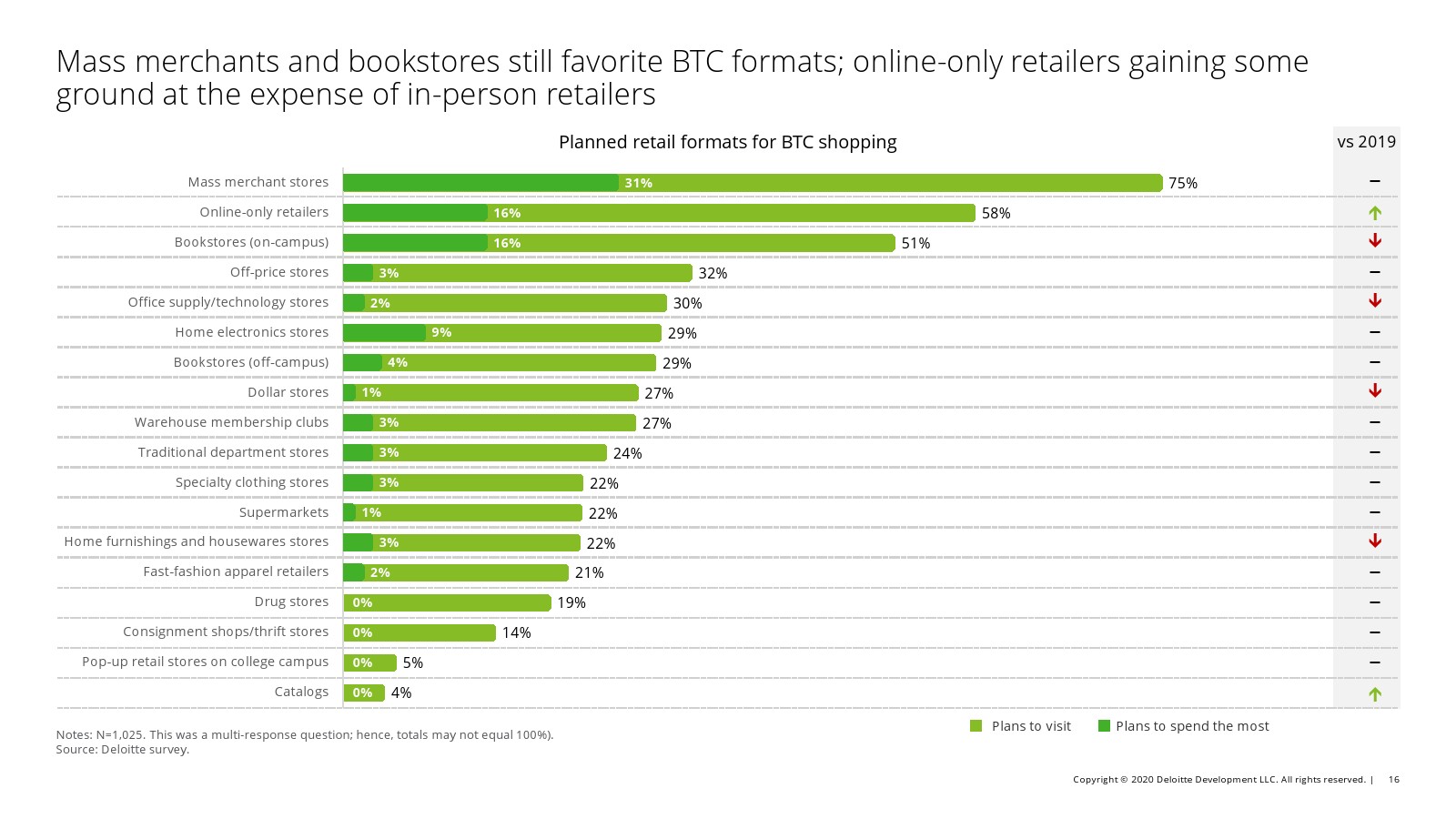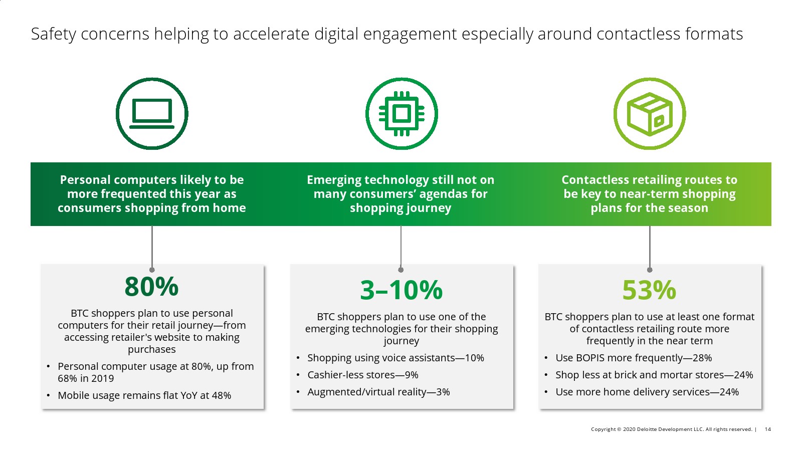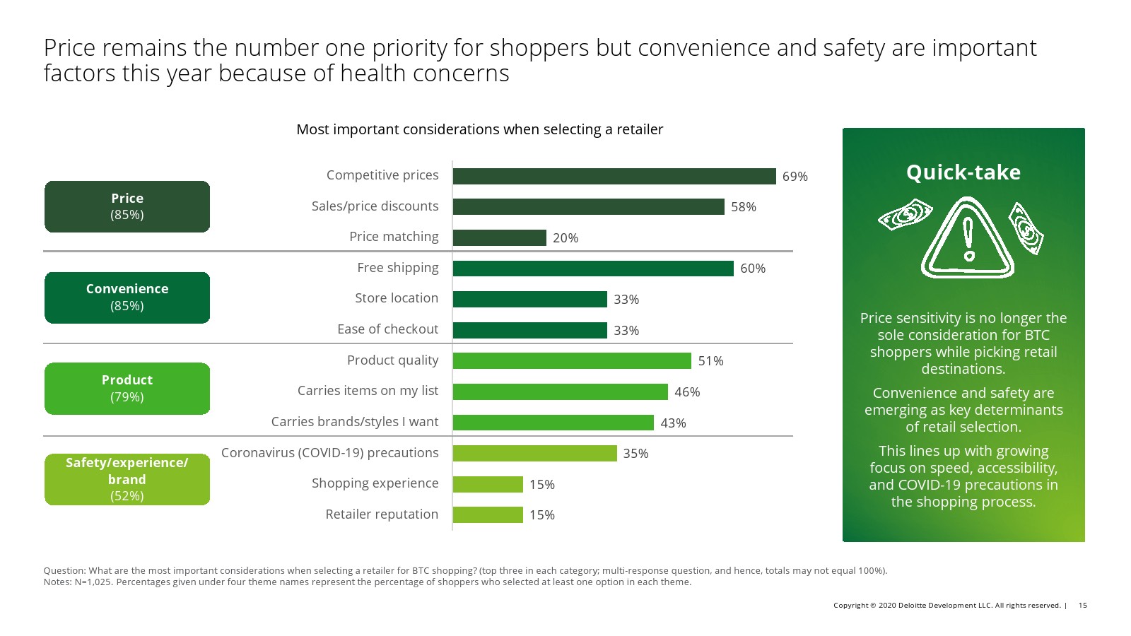 - 75%的购物者计划今年在大众商店购物;价格仍然是购物地点的驱动因素,但方便和安全变得更加优先