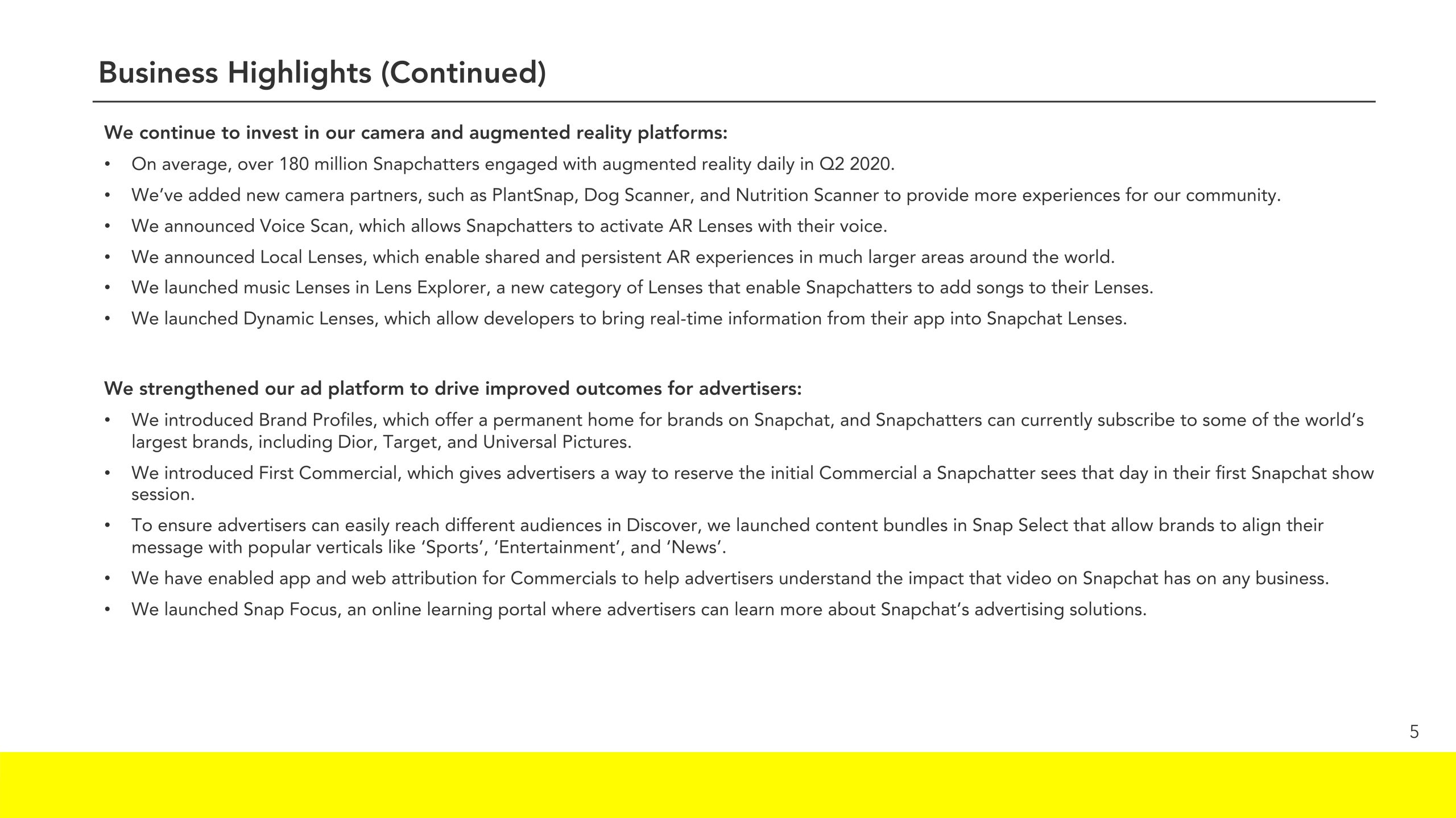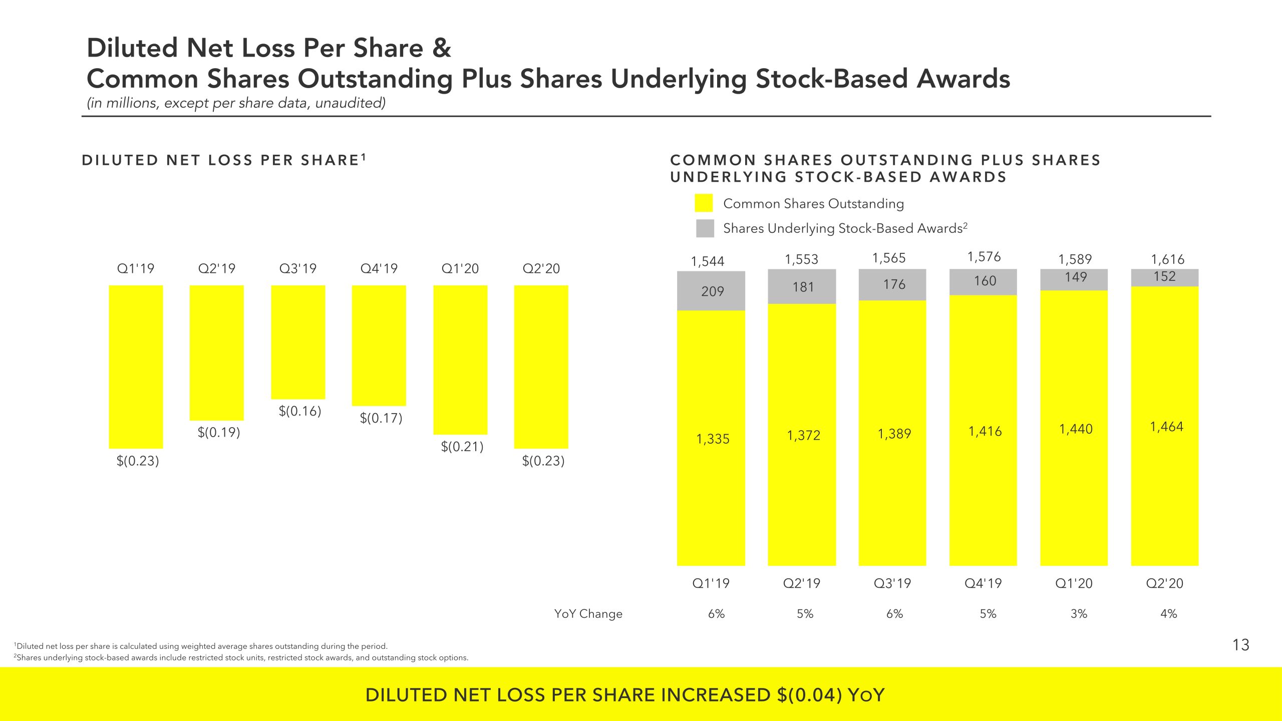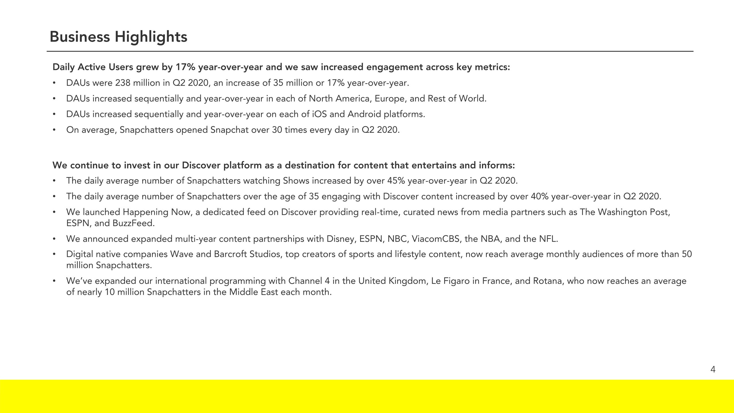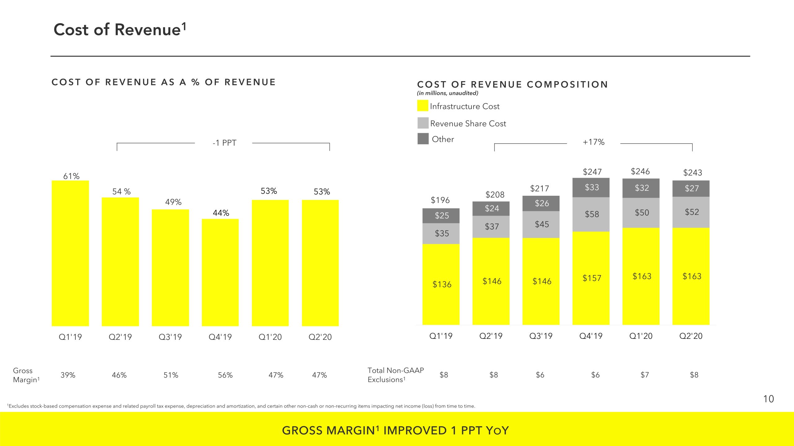 2Q20 Snap营收同比增长17%至4.54亿美元,人均变现水平为1.91美元,同比持平。