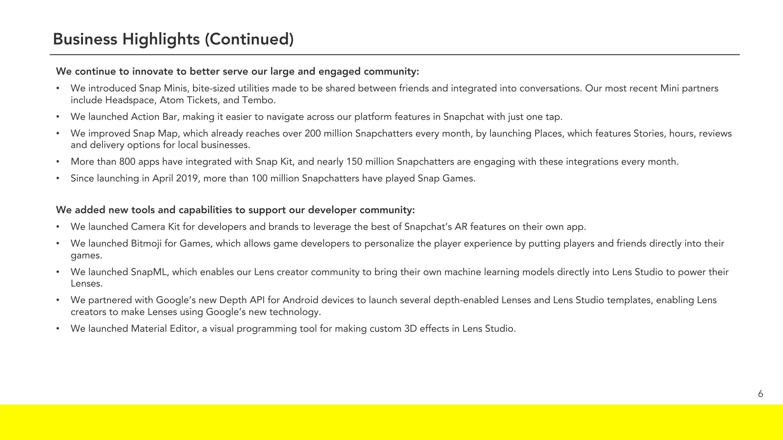 超过800款应用整合了Snap Kit,超过1.5亿的snap用户每个月使用这些整合服务。