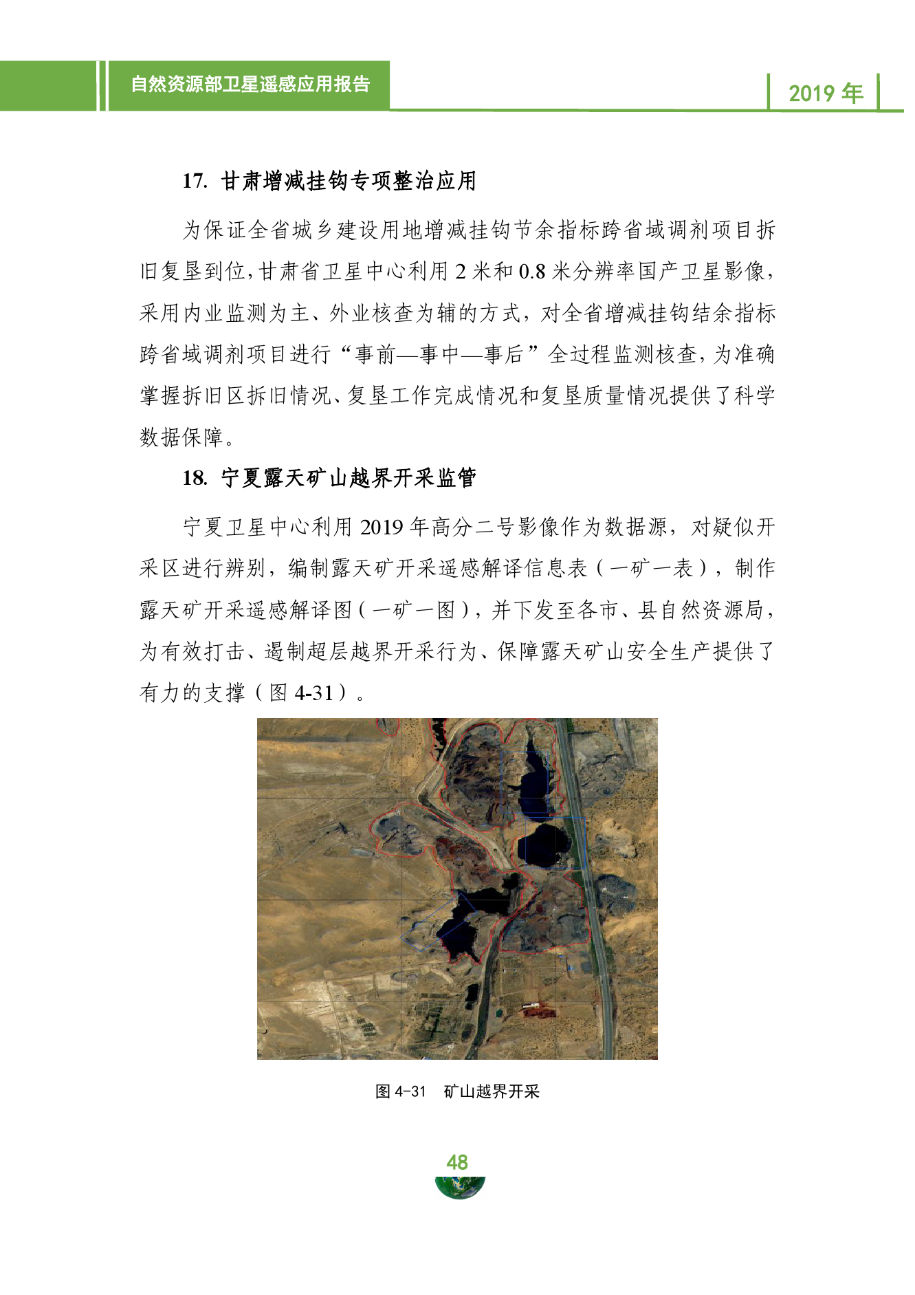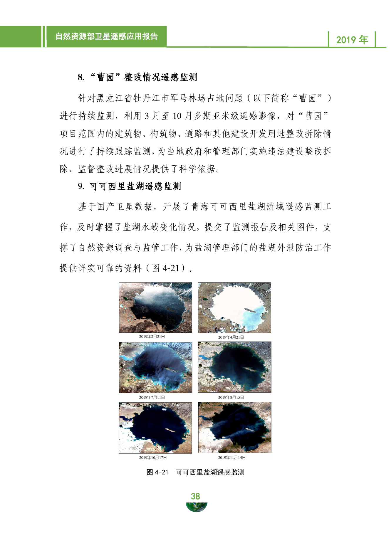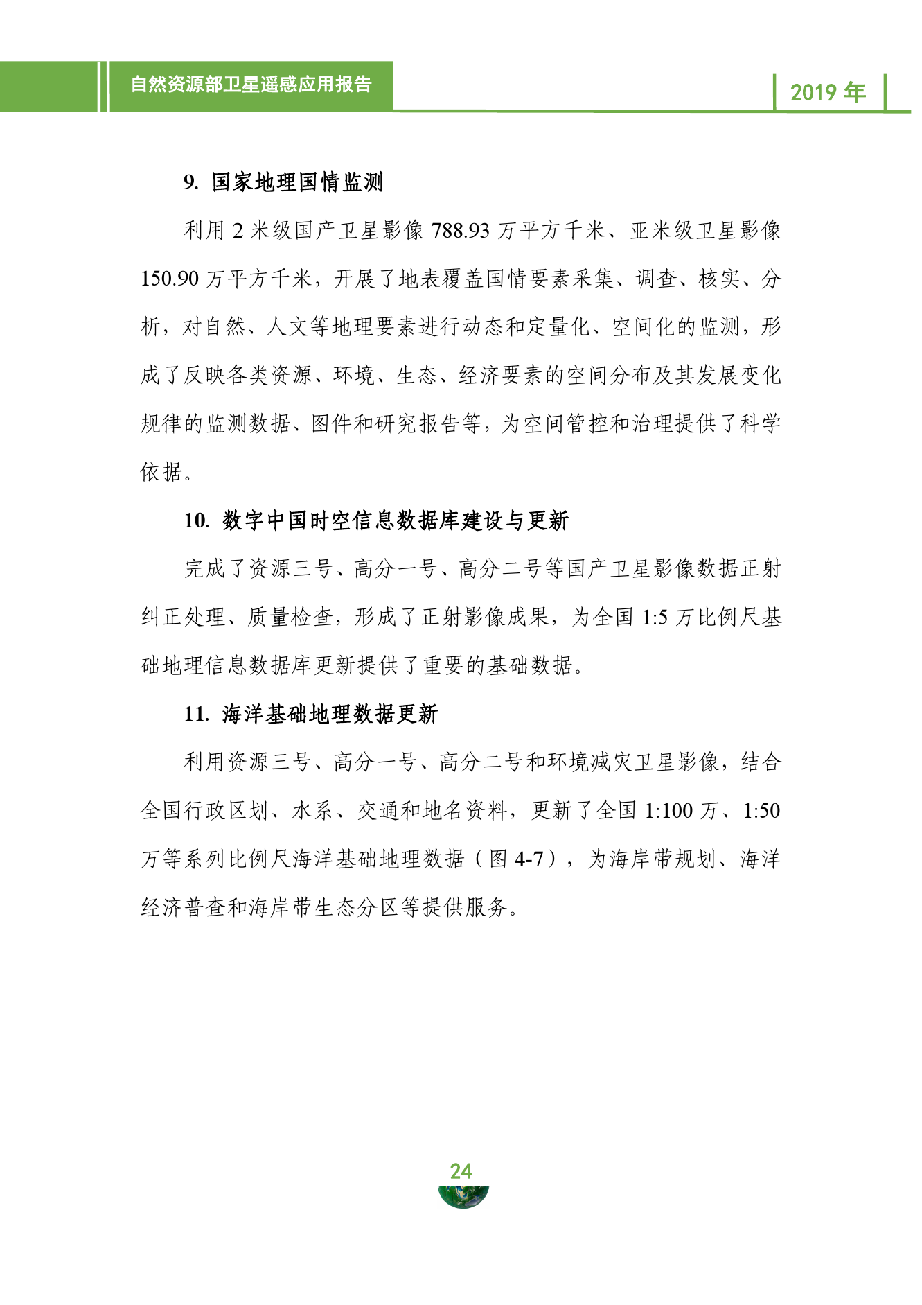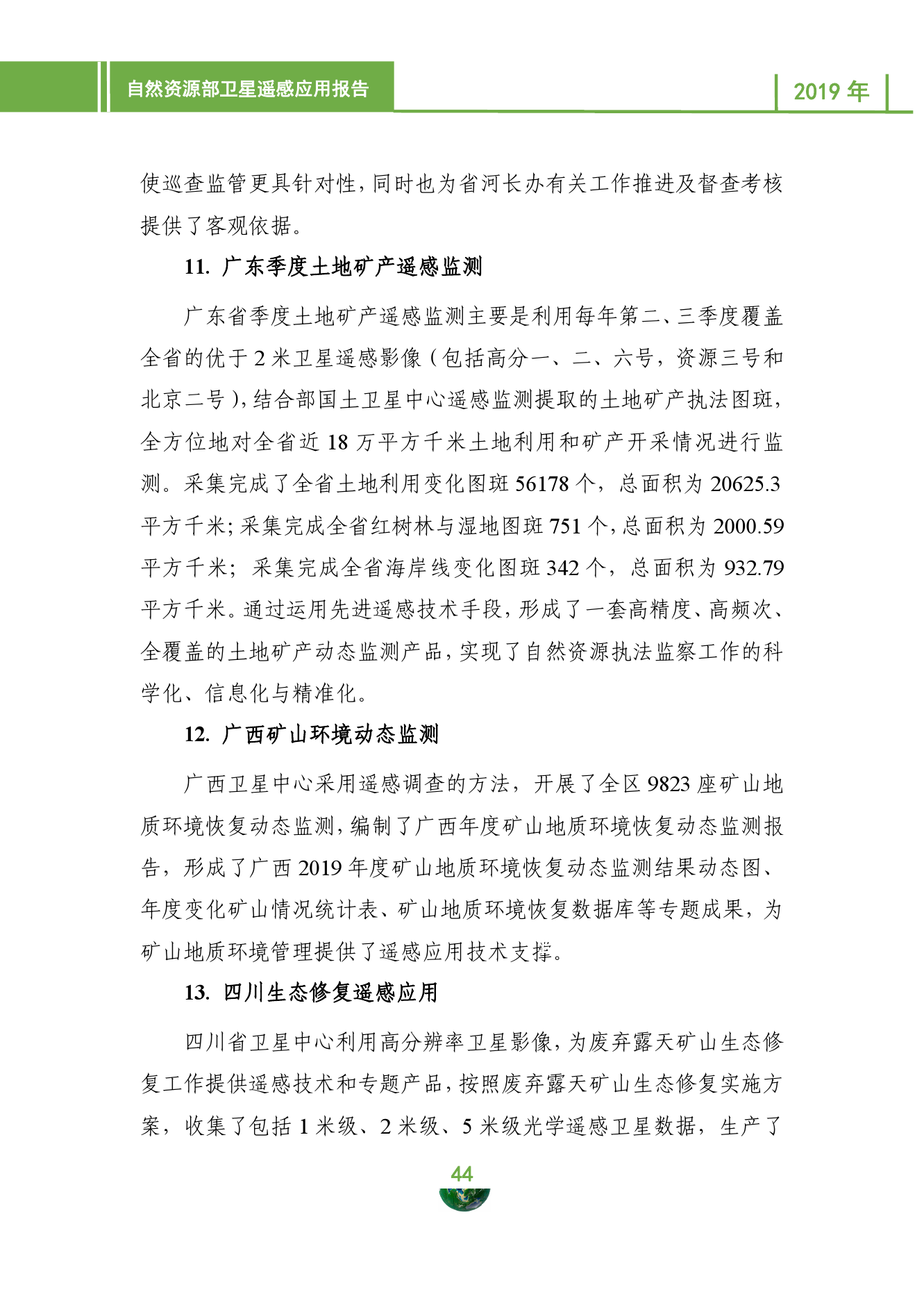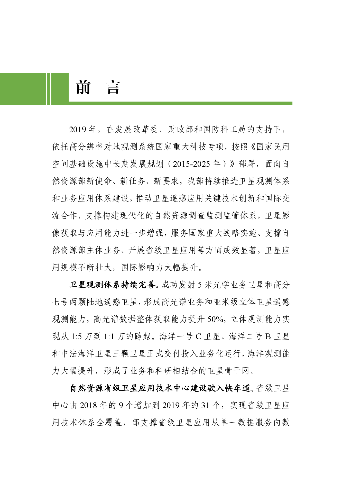 自然资源部日前发布的卫星遥感应用报告(2019年)显示,2019年,自然资源部持续推进卫星观测体系和业务应用体系建设,推动卫星遥感应用关键技术创新和国际交流合作,支撑构建现代化的自然资源调查监测监管体系,卫星影像获取与应用能力进一步增强,服务国家重大战略实施、支撑自然资源部主体业务、开展省级卫星应用等方面成效显著,卫星应用规模不断壮大,国际影响力大幅提升。