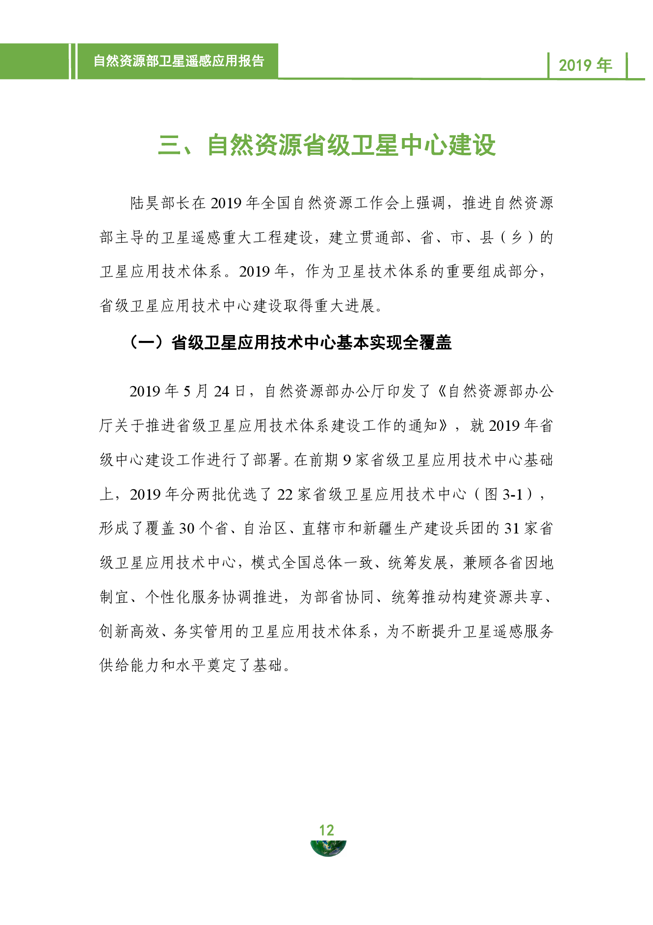 在自然资源省级卫星应用技术中心建设方面,省级卫星中心由2018年的9个增加到2019年的31个,实现省级卫星应用技术体系全覆盖,部支撑省级卫星应用从单一数据服务向数据、产品、软件、技术等全方位服务转变,部省之间从单向数据连接发展到人员、机构、技术、培训联动。