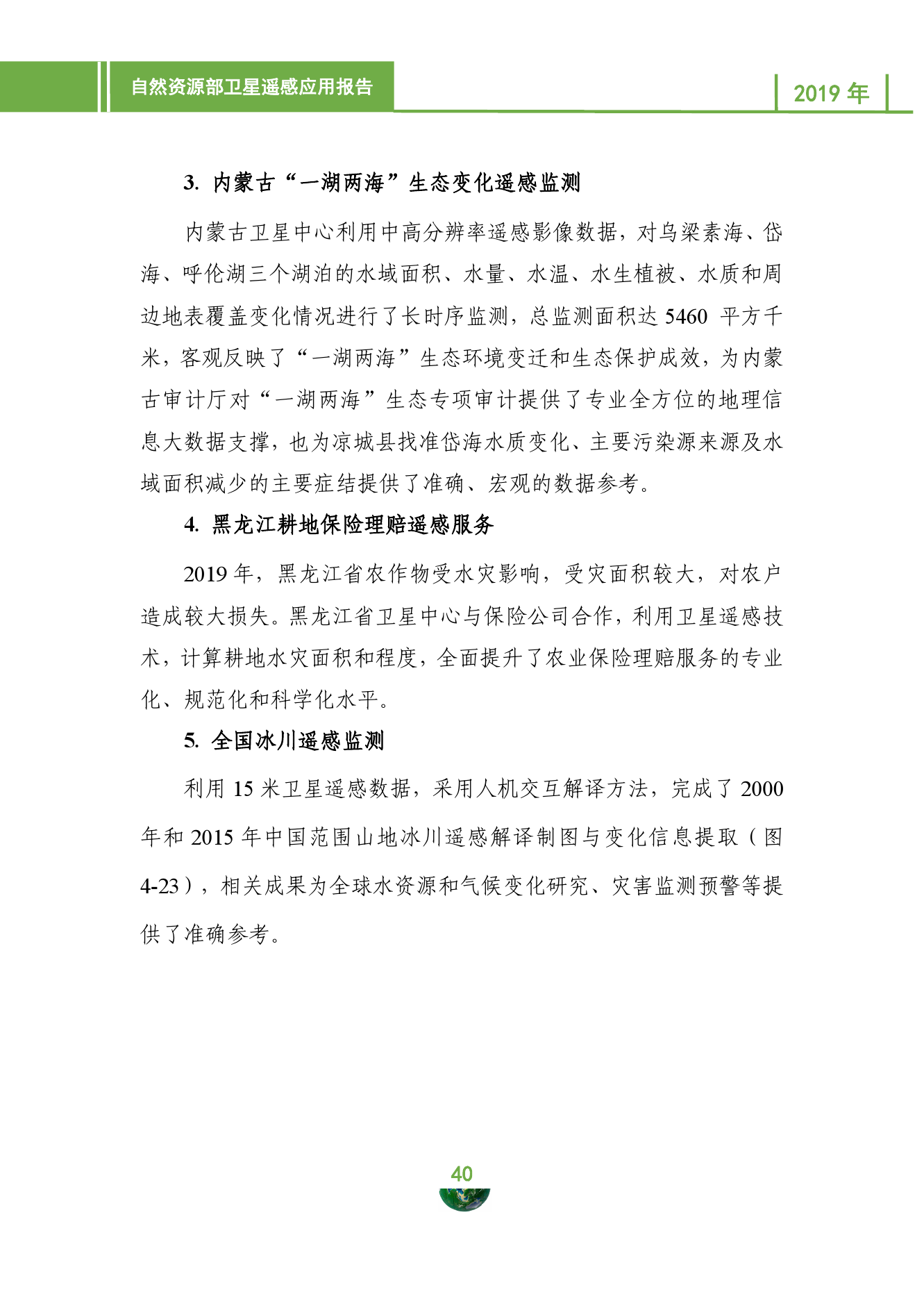 在卫星遥感应用方面,一是为支撑服务“一带一路”倡议、长江经济带发展战略、雄安新区规划建设、极地战略等方面提供重要数据、信息和技术支撑;二是持续推进遥感技术融入自然资源管理主责主业,开展15项主体业务应用,服务部13个业务司局;三是实施钢铁、煤炭和船舶去产能、全国“大棚房”遥感监测等专项遥感监测,服务自然资源专项调查、监测、督察和执法;四是自然资源主责主业应用与省级特色应用多点开花,为推进政府治理能力现代化提供科技支撑。