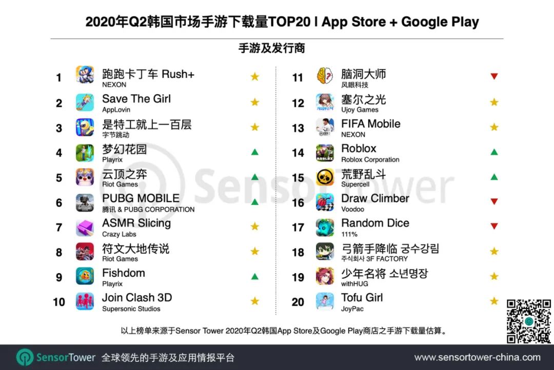 下载量方面,NEXON《跑跑卡丁车 Rush+》以超过290万次下载量位居榜首,是超休闲游戏《Save The Girl》下载量的两倍。拳头游戏旗下两款作品《云顶之弈》和《符文大地传说》分列榜单第5和第8名,再次彰显出韩国玩家对策略游戏的热衷。