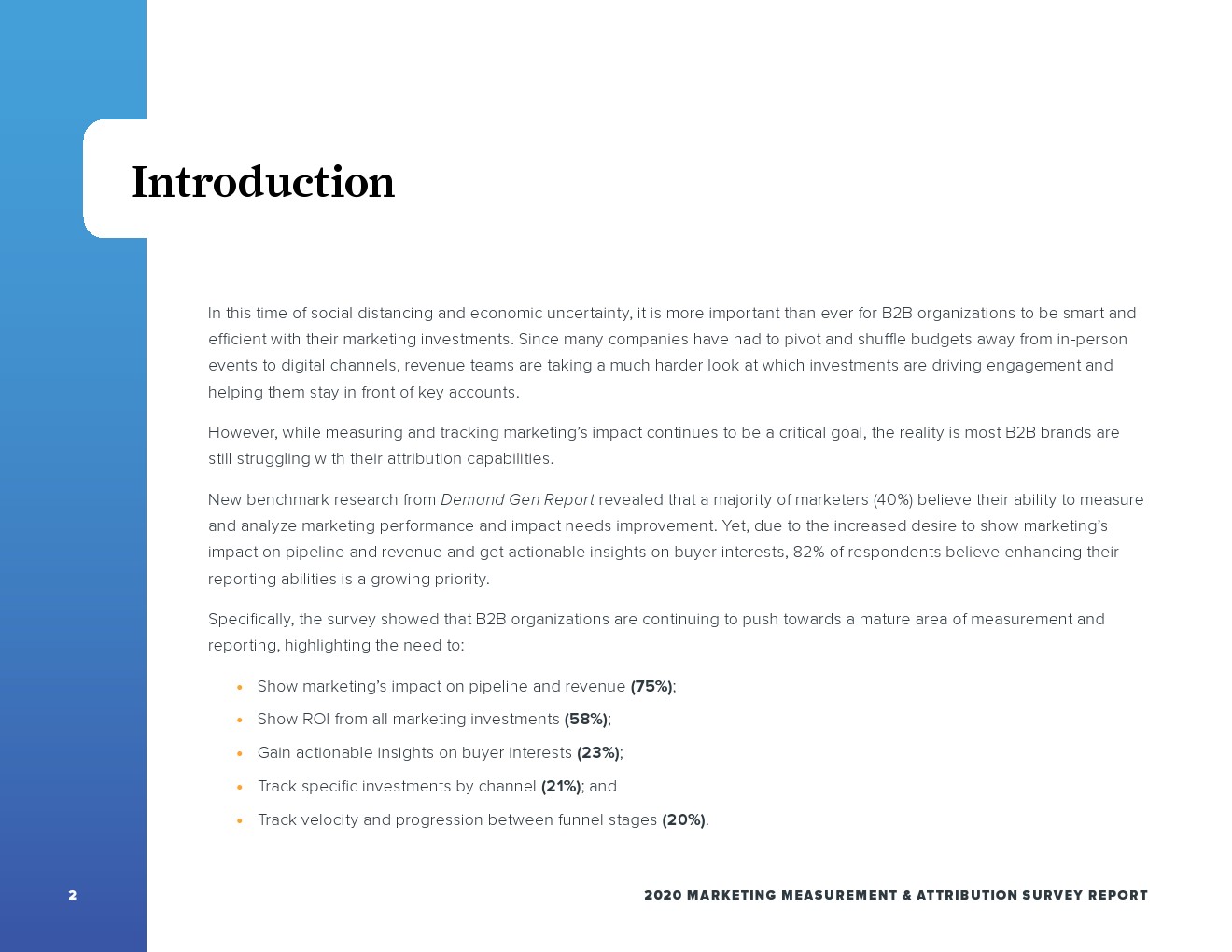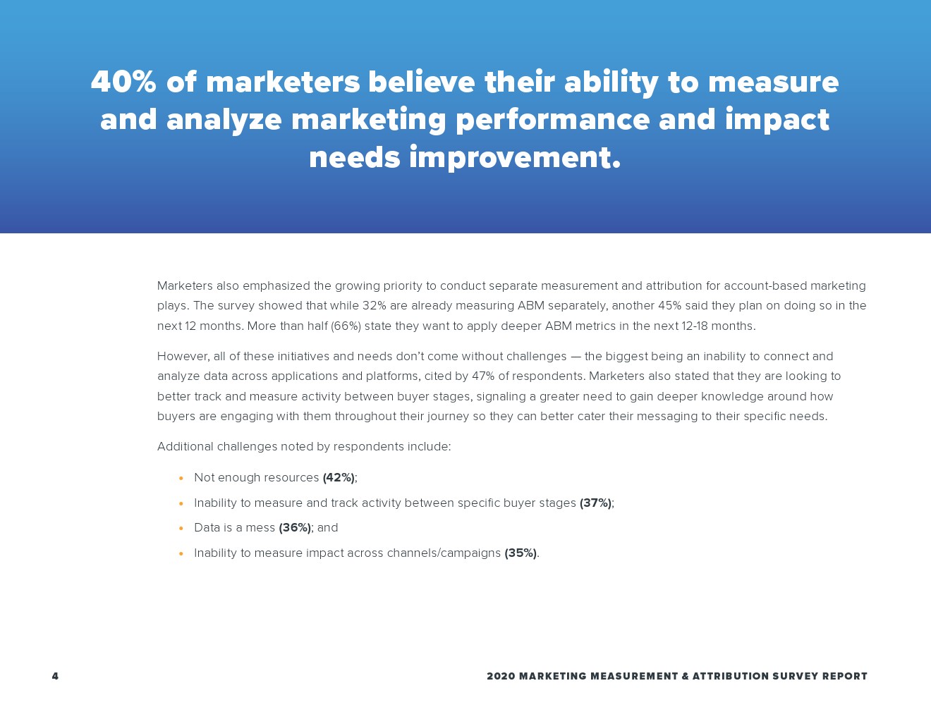 今年,35%的营销人员报告因无法衡量跨营销活动和渠道的影响而受到挑战;3/10的受访者(29%)因缺乏报告而苦苦挣扎。