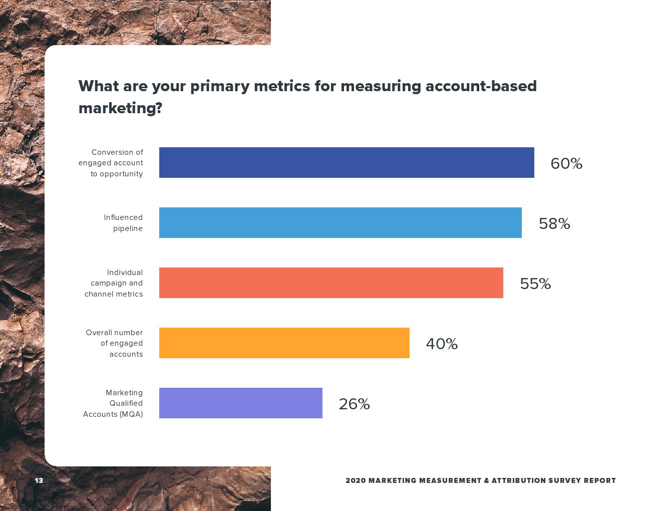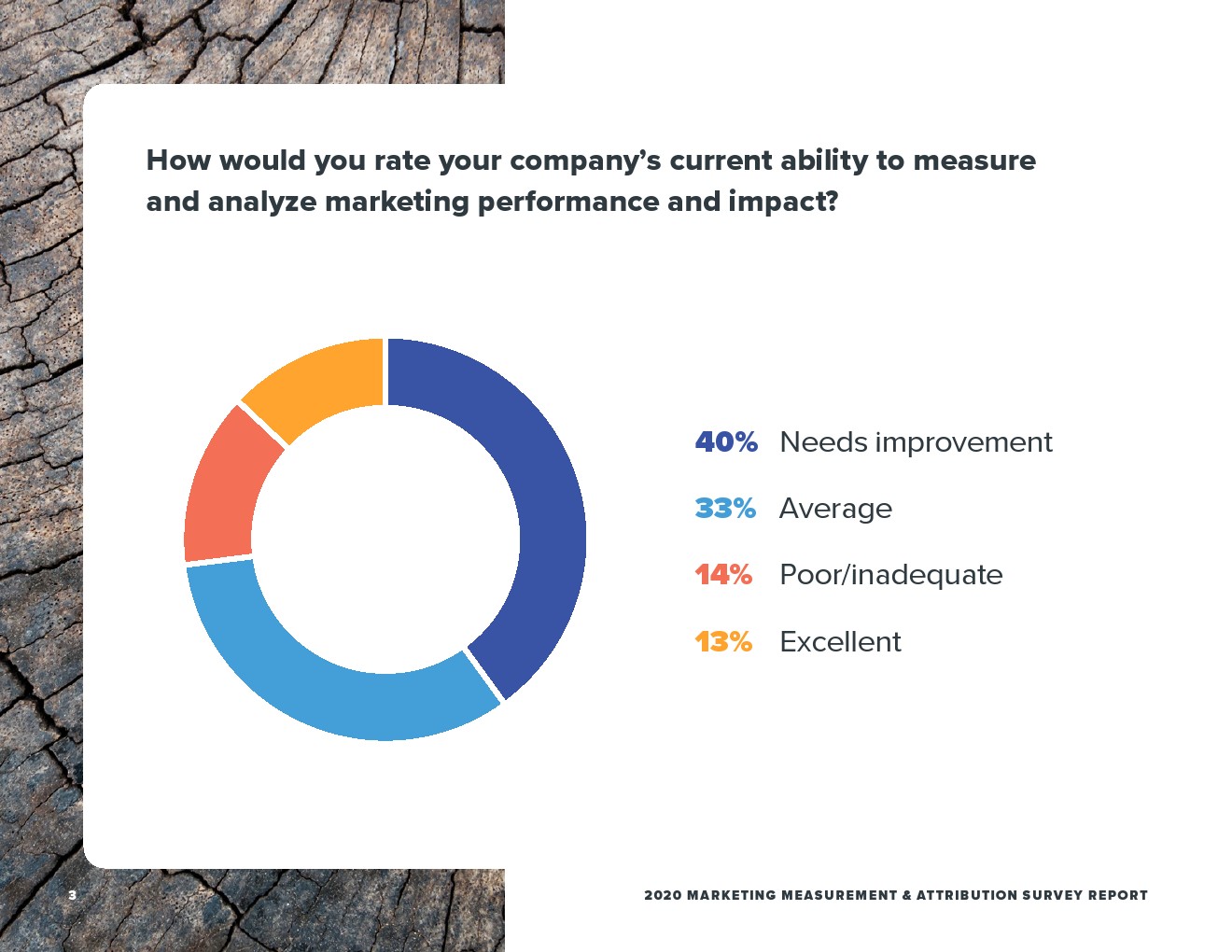 Demand Gen发布了“营销测量和归因调查报告”。在B2B企业中只有1/8的营销人员(13%)将他们公司目前衡量和分析营销业绩的能力评为优秀,约40%的受访者认为需要改进。