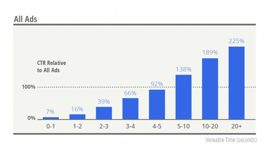 这是国外Wewable Time的研究数据,原文是The longer an ad is actually displayed to users, the higher the click-through rate(一个广告展现在用户面前的时间越长,这个广告的CTR概率越高)。因此,这个时间并非指的是一个广告在网站上放置的时间长短,而是一个广告真正在用户面前被关注到的时间。这是两个不同的概念。