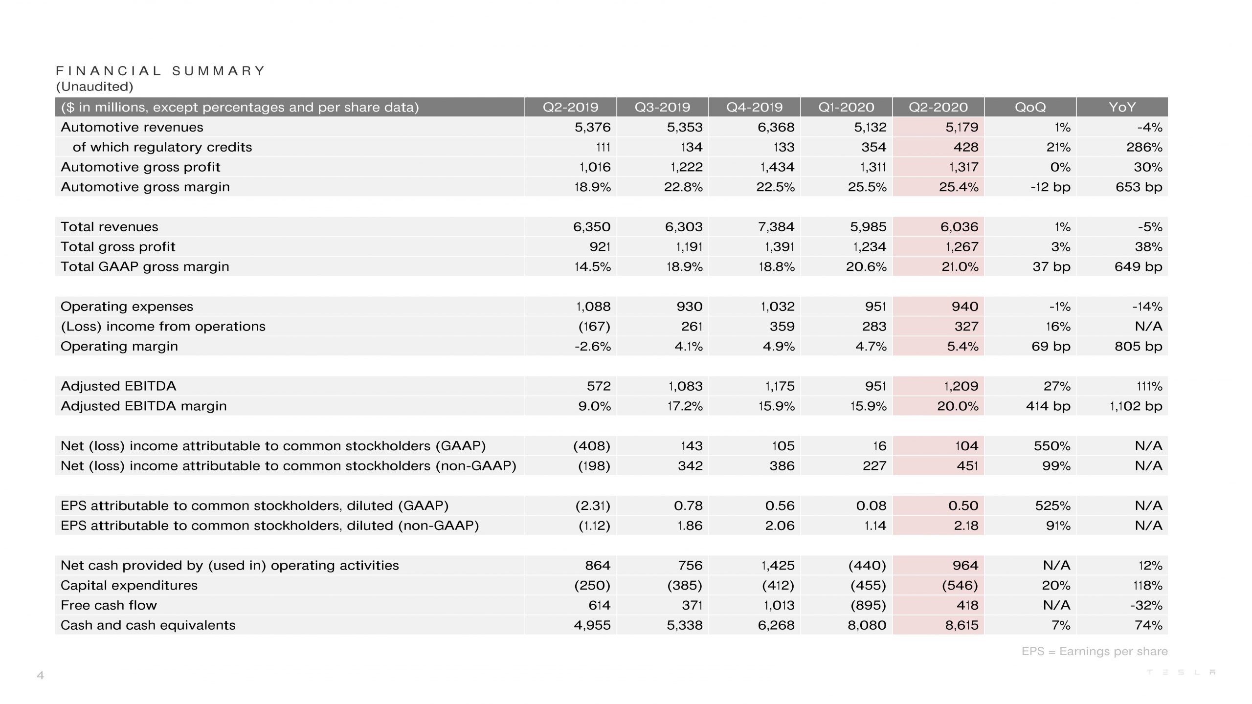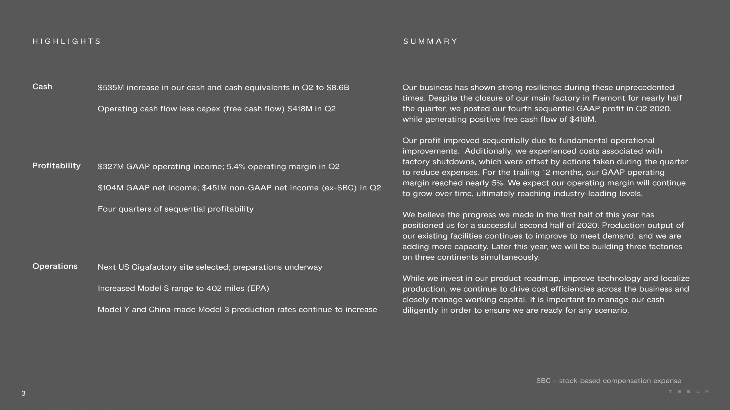受疫情影响2020年上半年汽车行业销量整体下跌30%的情况下,特斯拉保持了交付量的增长,2季度交付汽车9万多辆。同时得益于中国市场交付的拉动、运营效率的提升和费用节省,特斯拉2季度也保持了盈利,这已经是该公司连续四个季度实现盈利,为其进入标普500铺平了道路。