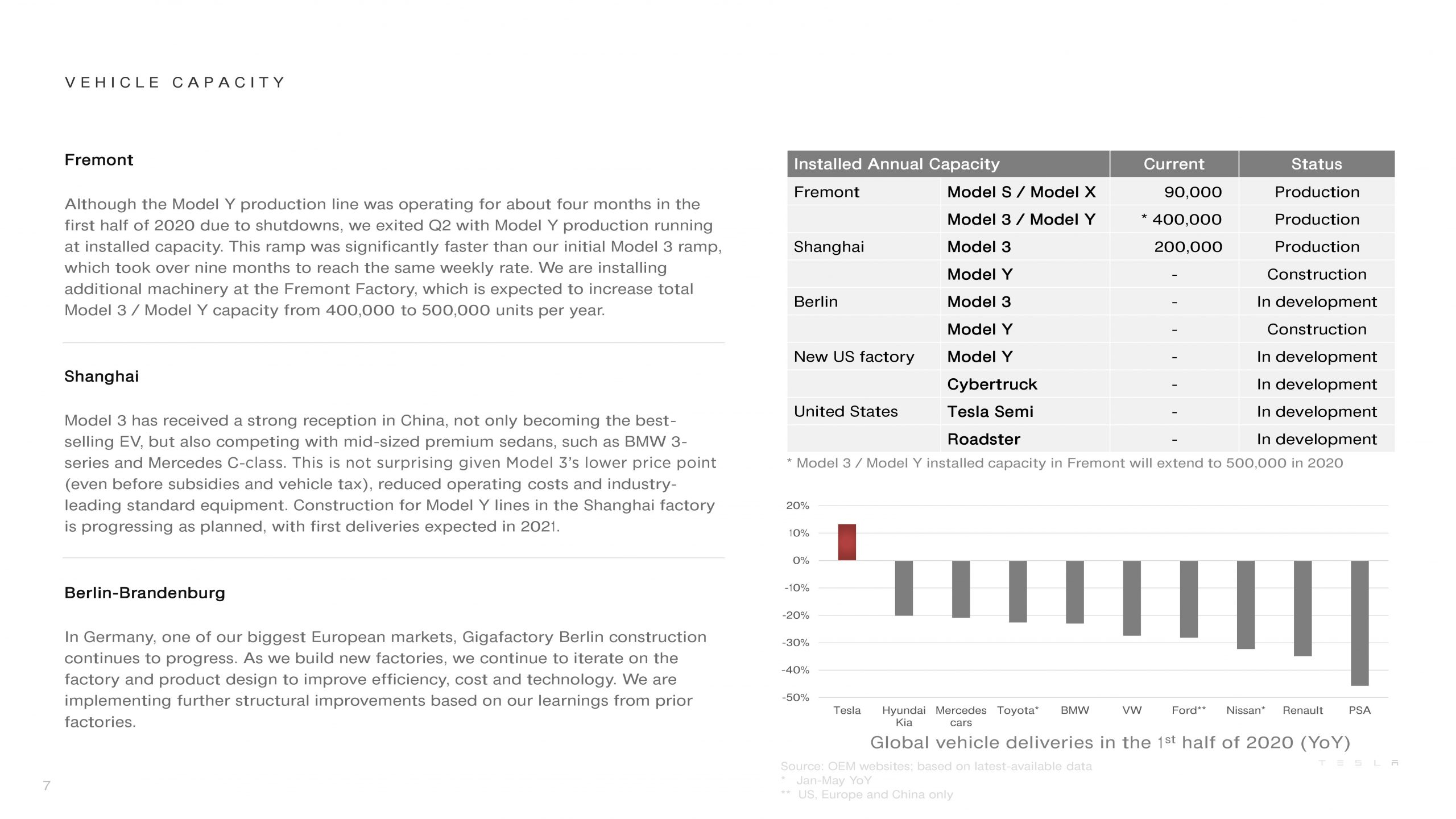 上海工厂Model 3 产能200,000,Model Y产线建设中,预期2021年交付。