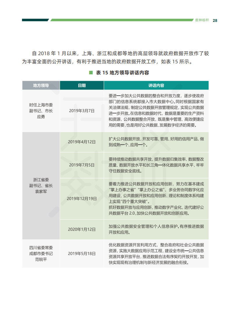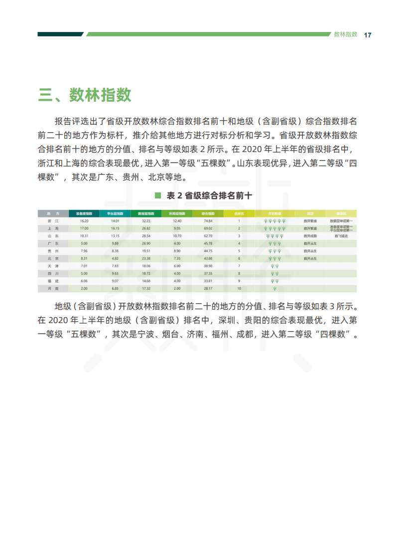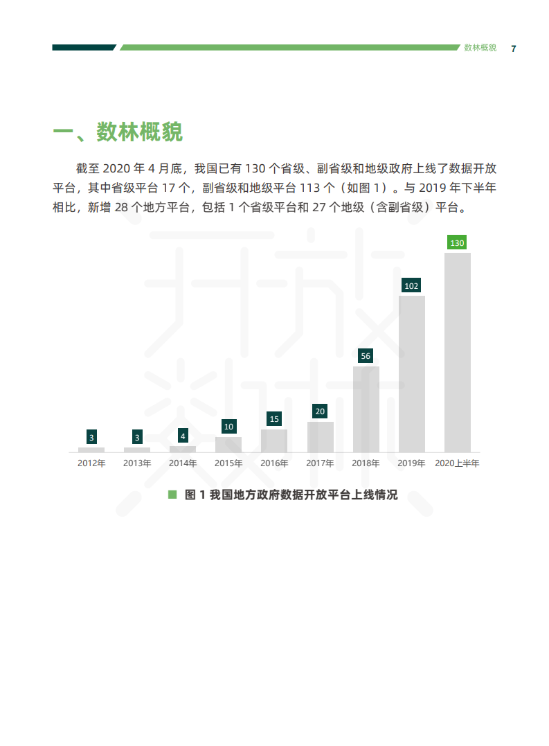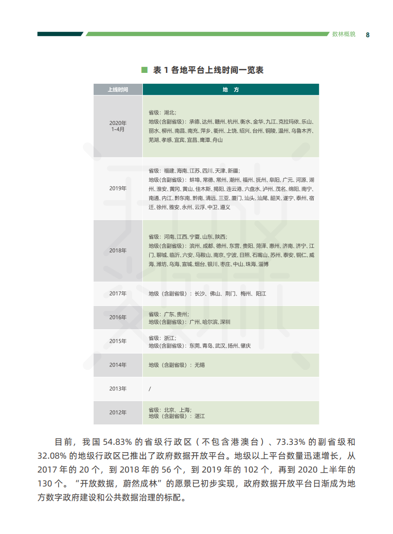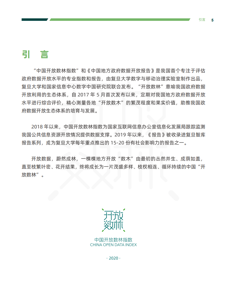 复旦大学联合国家信息中心数字中国研究院发布了 “2020中国开放数林指数”和《2020中国地方政府数据开放报告》。开放数据,蔚然成林,“开放数林”意喻我国政府数据开放利用的生态体系。