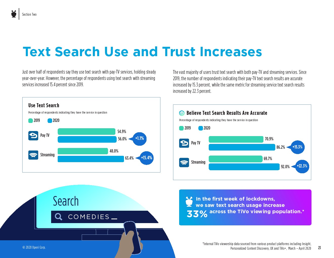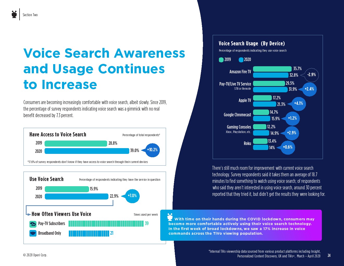 TiVo发布了“2020年第一季度视频趋势报告”。正如数据所揭示的那样,随着居家隔离措施在2020年变得常态化,从口碑中得知新电视节目的人越来越少。不变的是,易用性和新内容的发现被证明对良好的观看体验还是那么地重要。