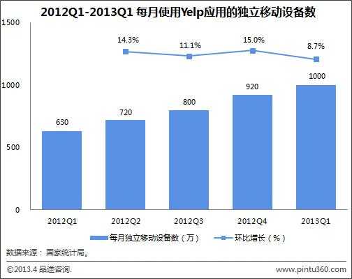 使用Yelp应用的独立移动设备数继续增长,移动端重要性进一步凸显