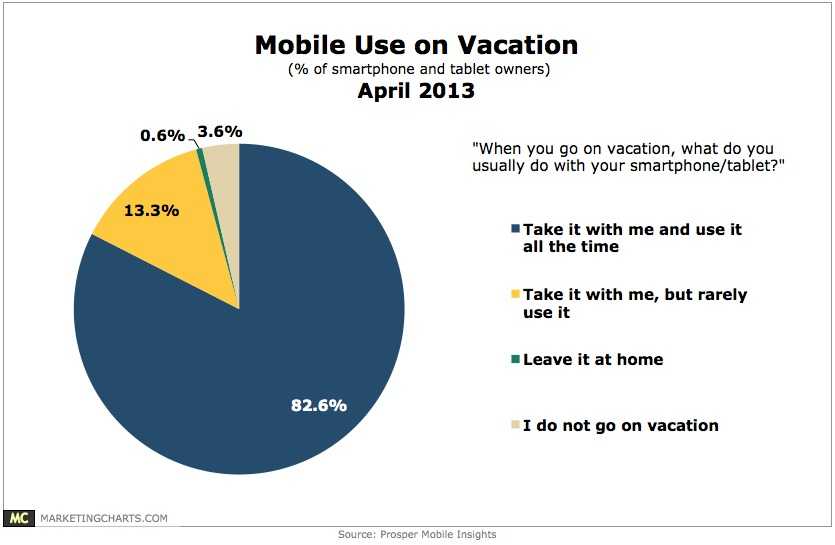智能手机和平板电脑 用户看来是无法放开他们的设备,年轻的智能手机用户更是如此。3/4的人早上起来时查看手机,超过40%的人每10分钟查看一次。即便是休闲无比的度假也不能把这些设备从用户手中拿开。当他们度假时,8/10的用户将手机一直带在身边,而只有1/10带手机的人很少使用手机。