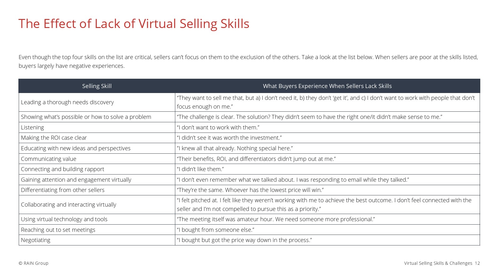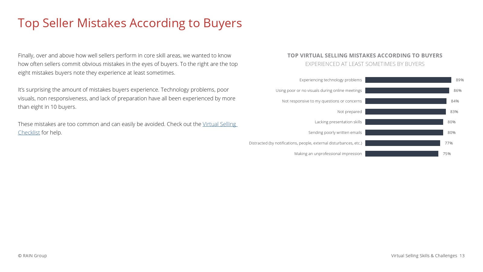 这并不是说虚拟销售是完美无缺的。每10个B2B买家中就有9个(89%)报告了技术问题。其他人也抱怨卖家没有回应他们的问题或担忧(84%)。