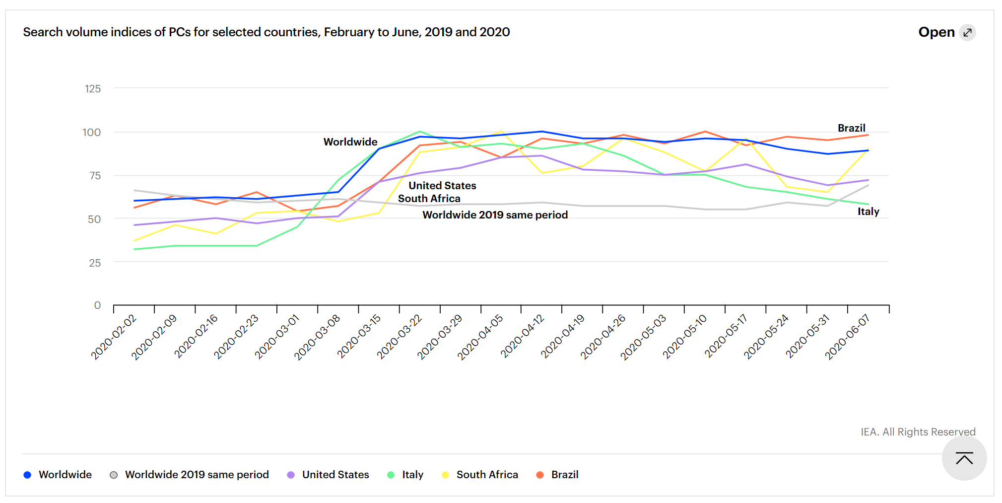 在一些受大流行严重影响的国家,人们对计算机的兴趣明显激增,恰逢限制措施开始和/或大流行。