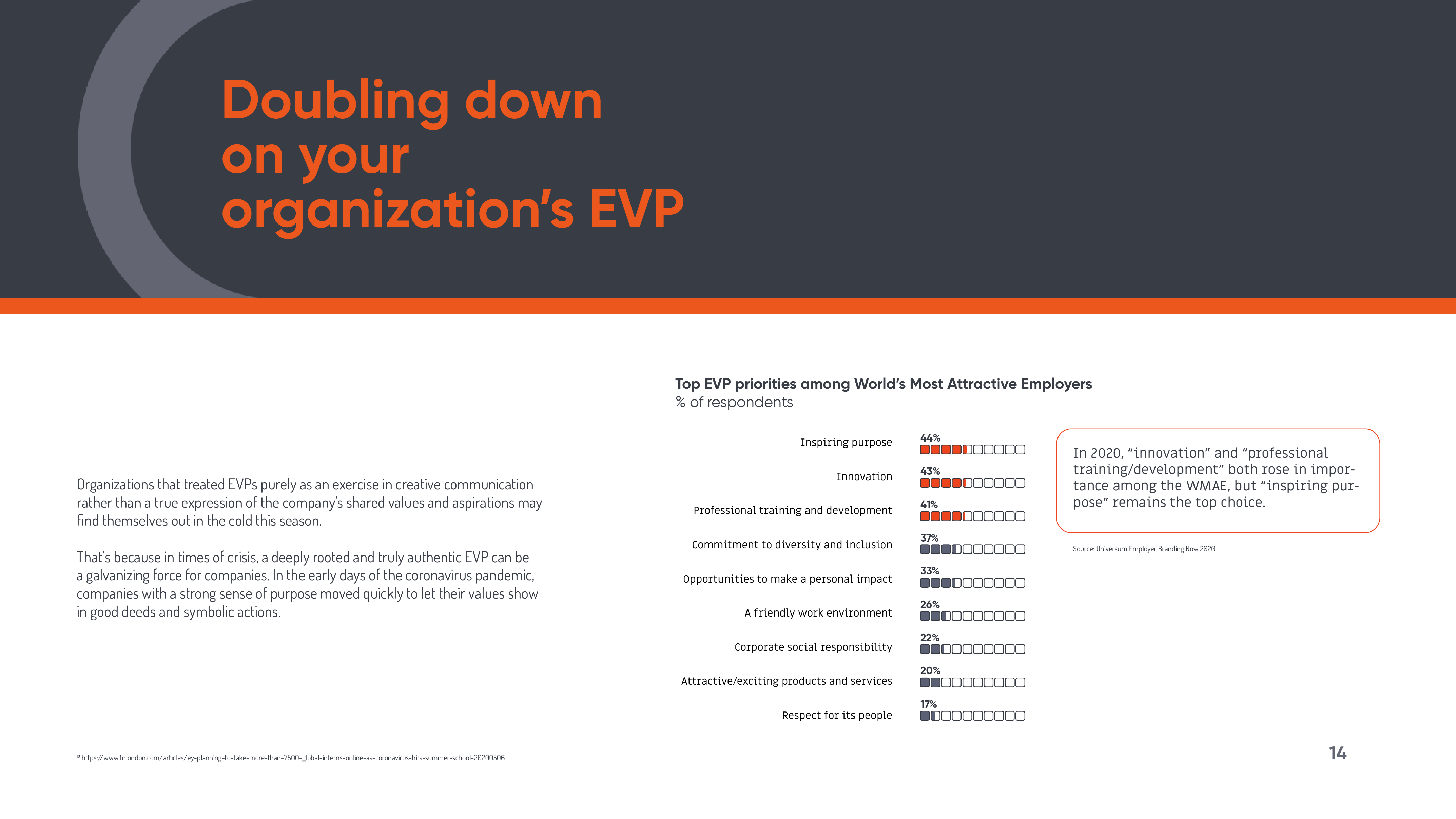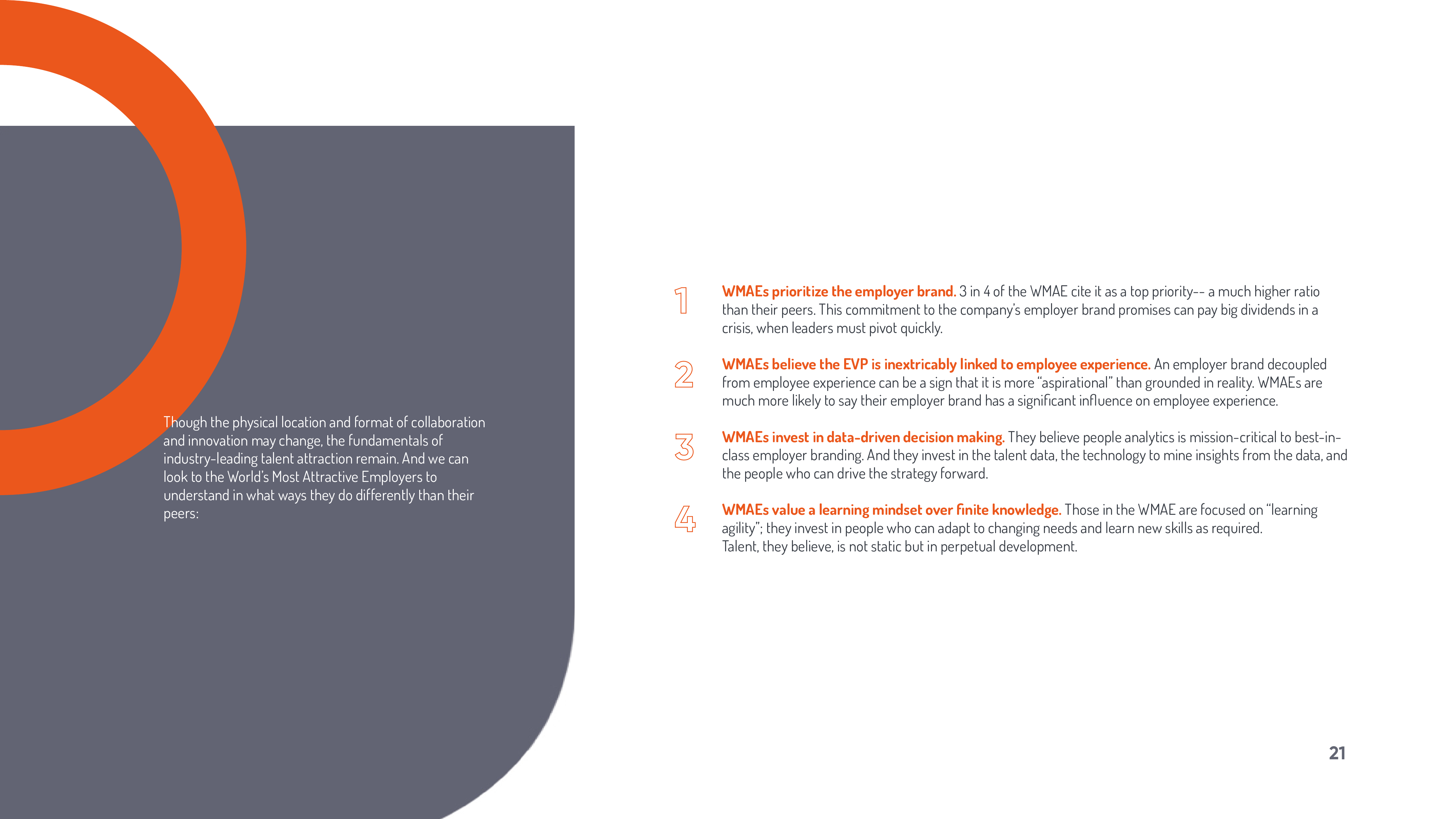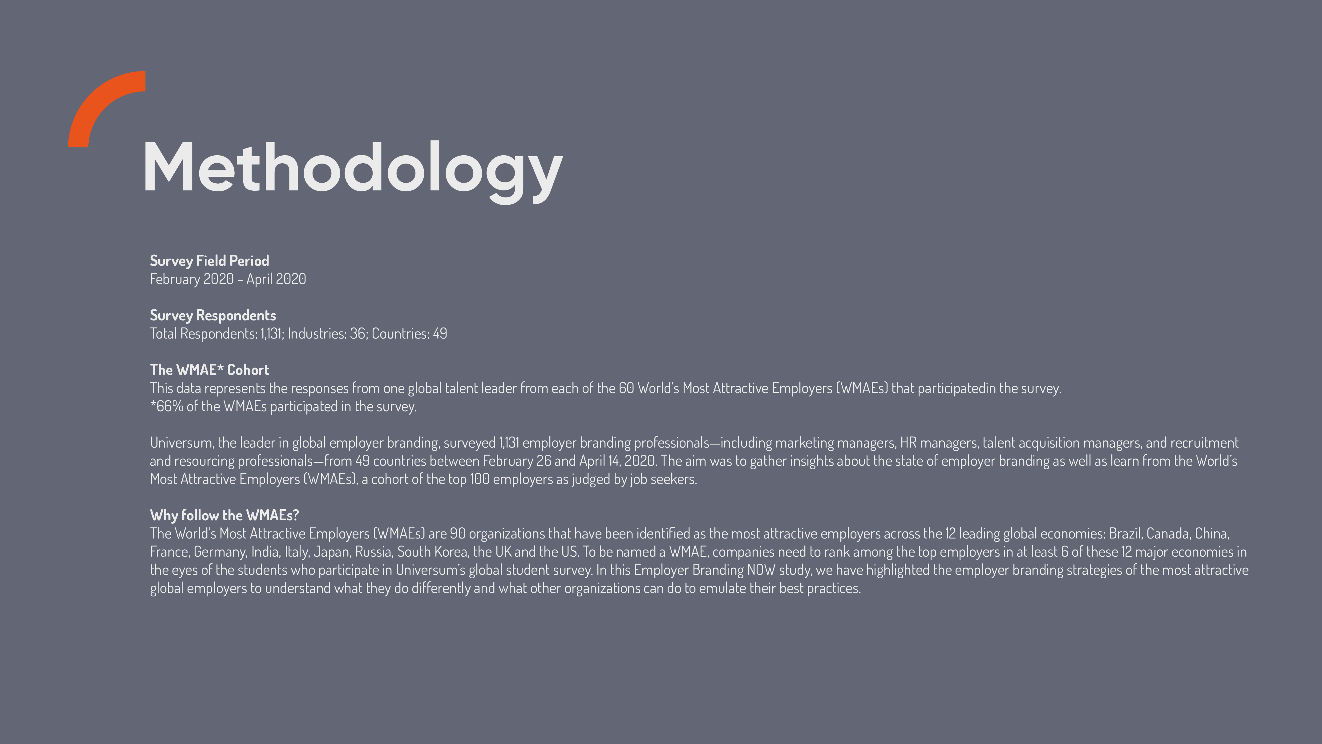 全球雇主品牌领导者优兴咨询对来自49个国家的1131名雇主品牌专业人士进行了调查,其中包括市场营销经理、人力资源经理、人才招聘经理以及招聘和资源招聘专业人士。该活动旨在收集有关雇主品牌塑造状况的见解,并向“世界最具吸引力雇主”(WMAEs)学习。WMAEs是由求职者评选出的前100名雇主。