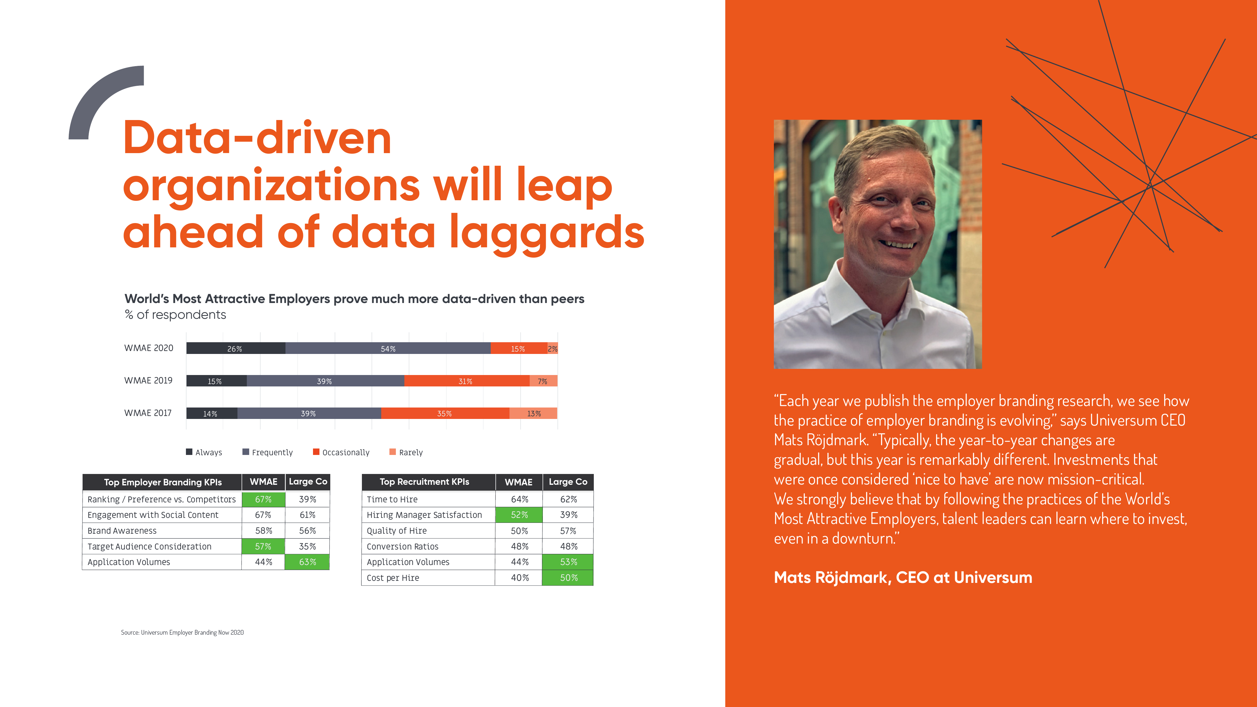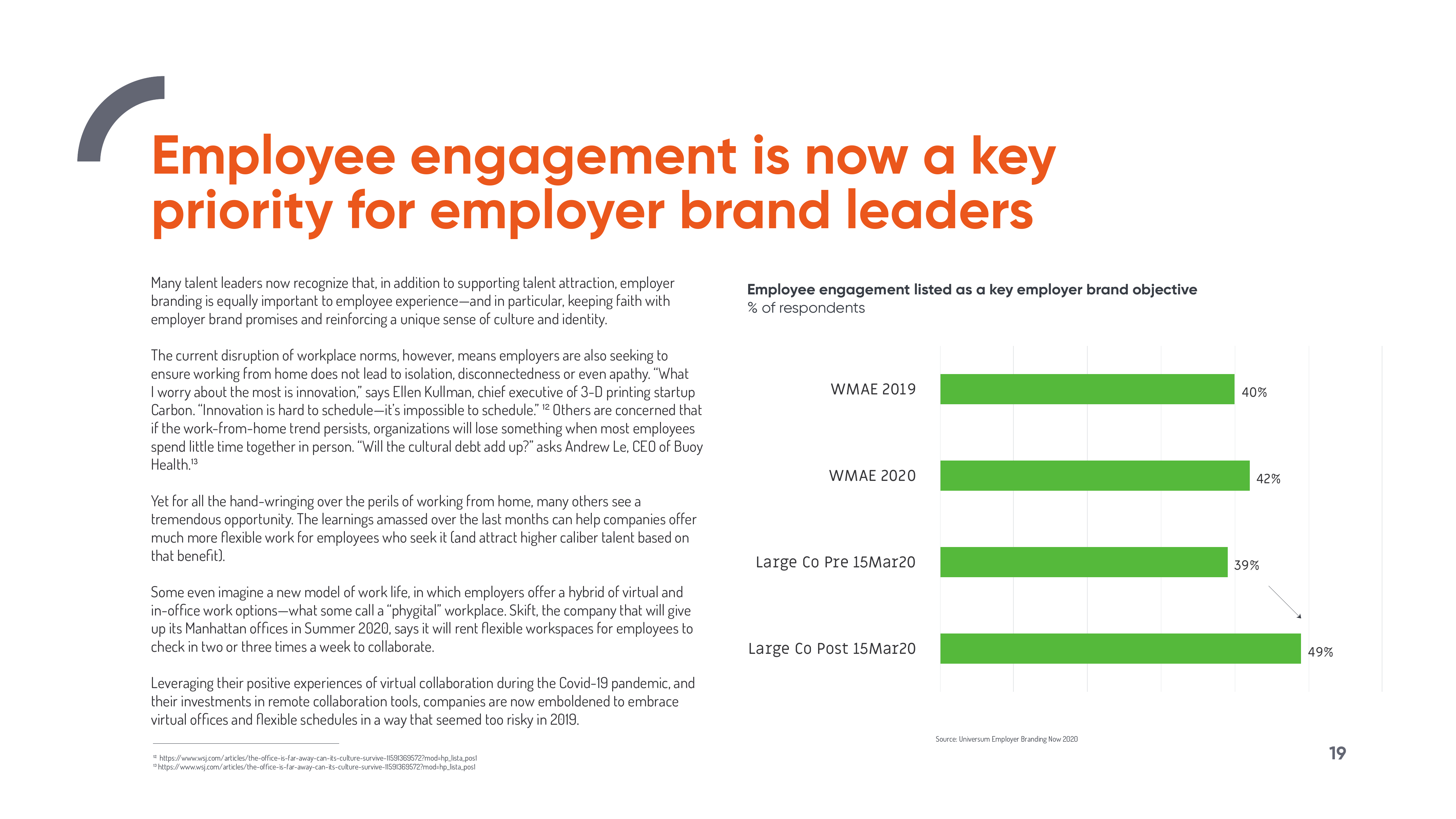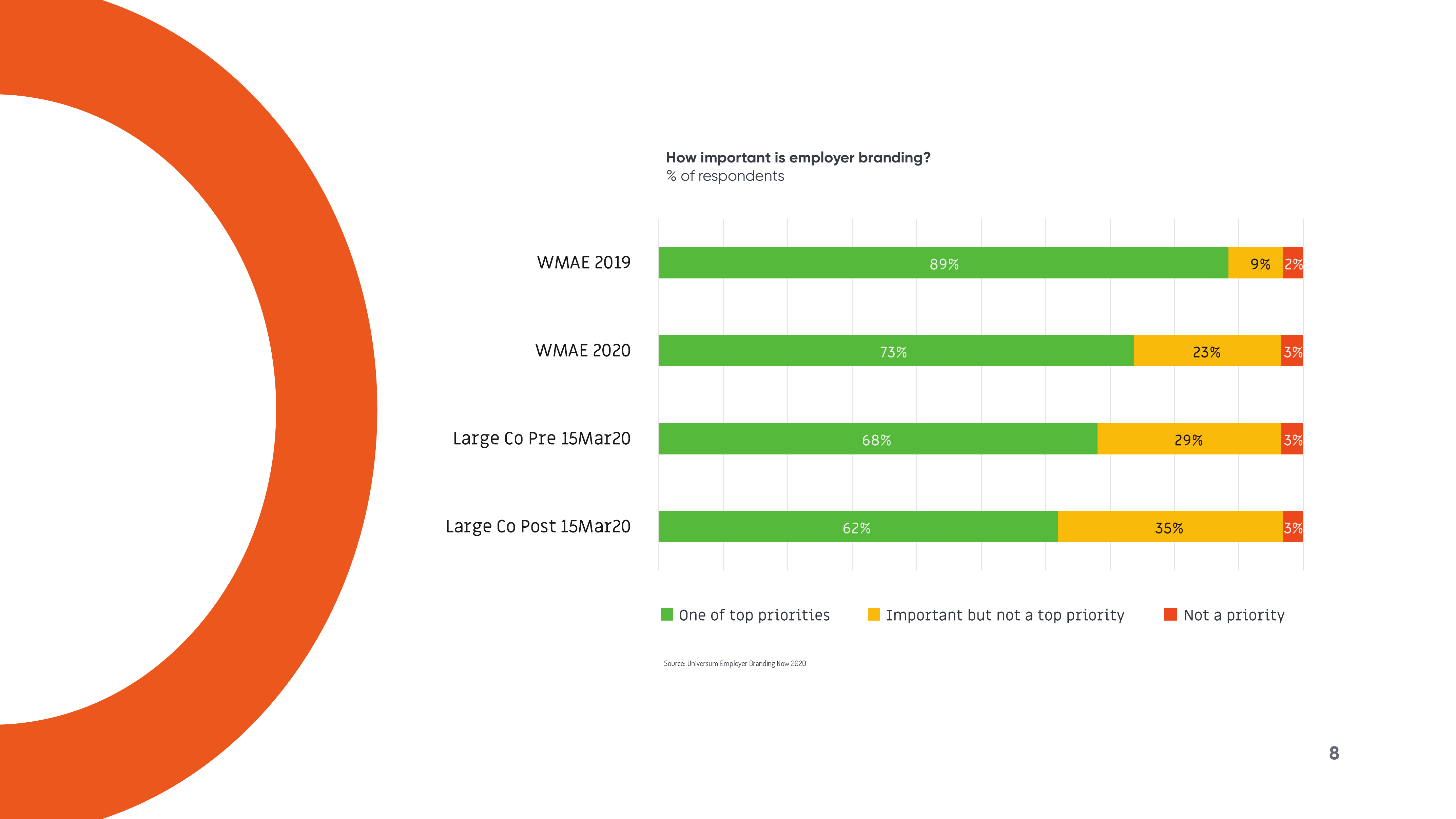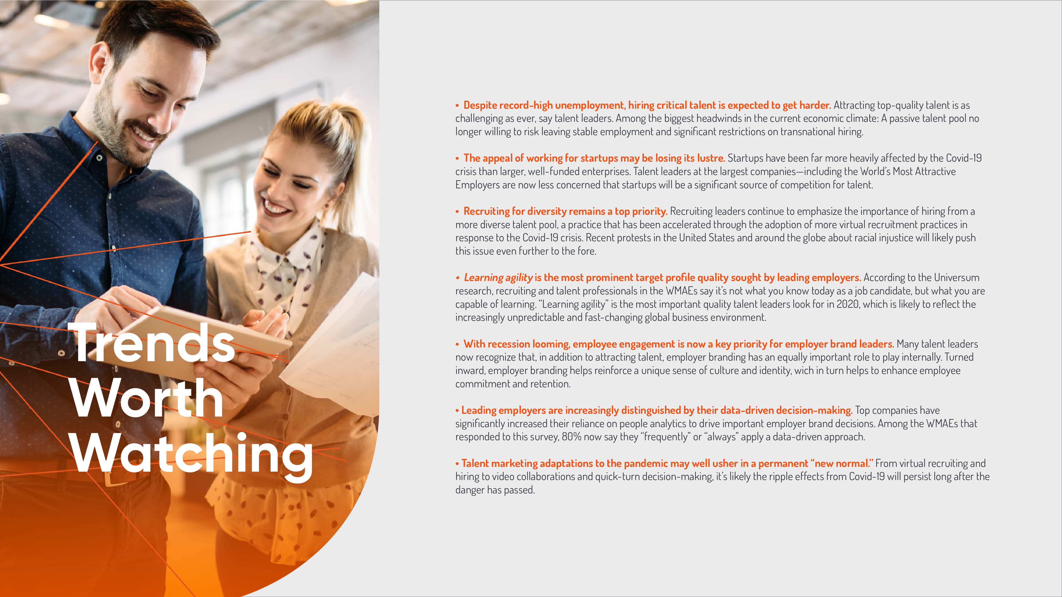 全球雇主品牌领导者优兴咨询对来自49个国家的1131名雇主品牌专业人士进行了调查,其中包括市场营销经理、人力资源经理、人才招聘经理以及招聘和资源招聘专业人士。该活动旨在收集有关雇主品牌塑造状况的见解,并向“世界最具吸引力雇主”(WMAEs)学习。WMAEs是由求职者评选出的前100名雇主。