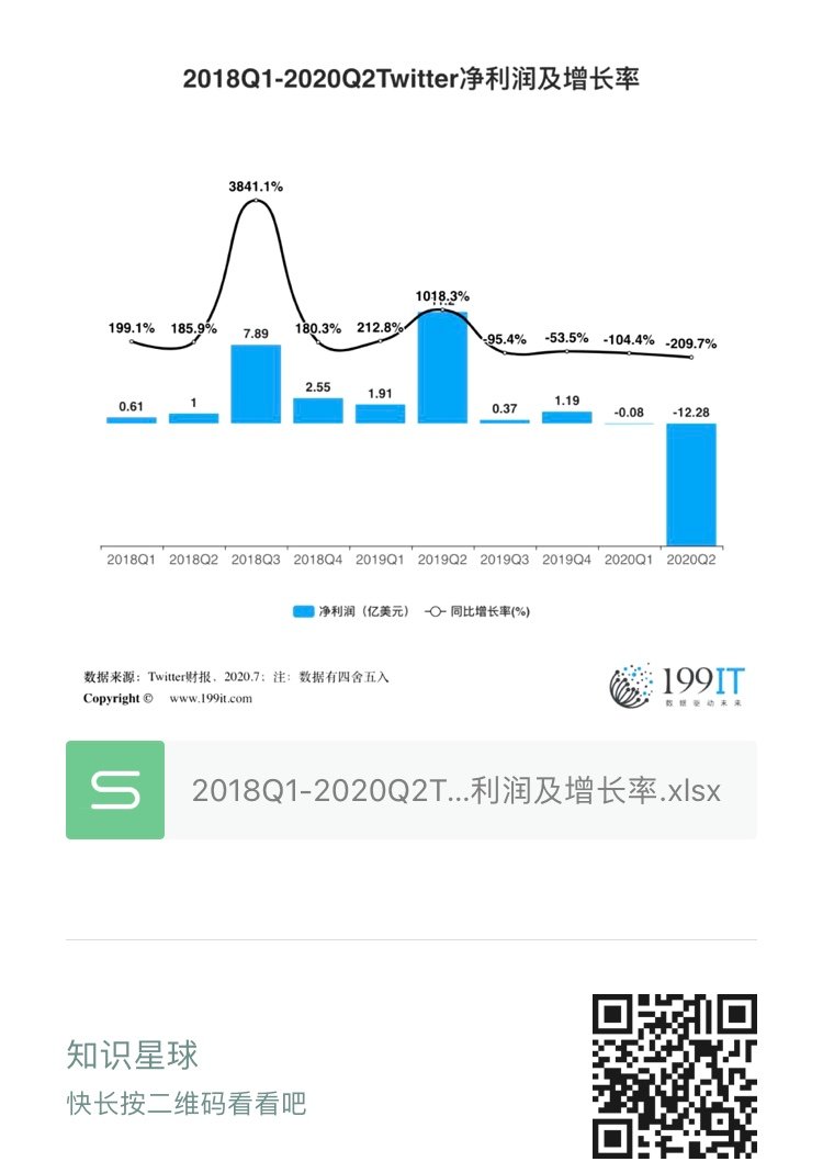 - 2018Q1-2020年Q2 Twitter营收规模及增长率(附原数据表)