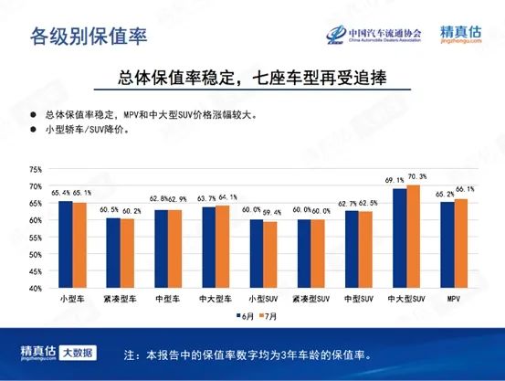 各级别保值率:总体保值率稳定,7座车型再受追捧