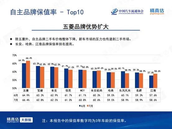 2020年8月3日,中国汽车流通协会和精真估联合发布了《2020年7月中国汽车保值率研究报告》。通过保值率研究旨在反应该品牌的产品力、认知度、美誉度等综合实力,对未来开展回购、置换、租赁、金融、新车定价参考等相关业务提供重要数据参考,从而降低业务风险,提升经营效率。
