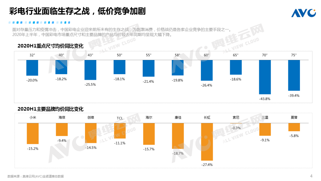 自2016年中国彩电市场规模突破5000万的天花板之后,市场正式进入存量竞争,规模在5000万边缘徘徊,增长速度放缓,进入2020年,疫情突然爆发使存量竞争的彩电市场更加雪上加霜。2020年上半年彩电市场表现如下: