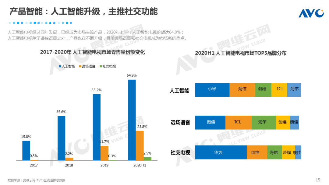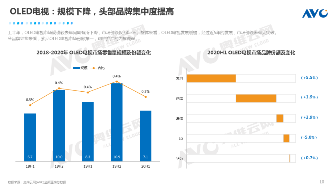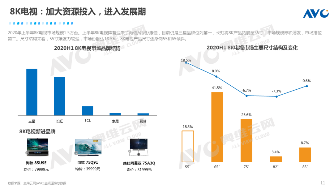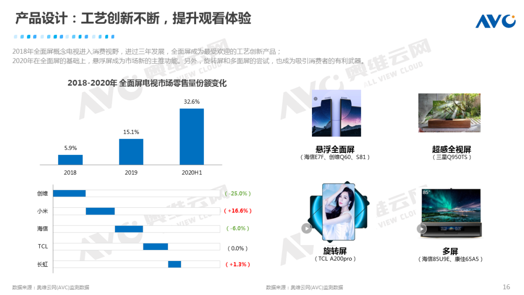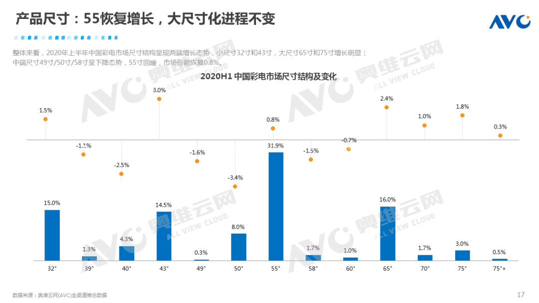 智能产品和工艺创新产品不断进化,提升消费者观看体验和智能体验。55寸恢复增长,大尺寸65+份额持续扩张。