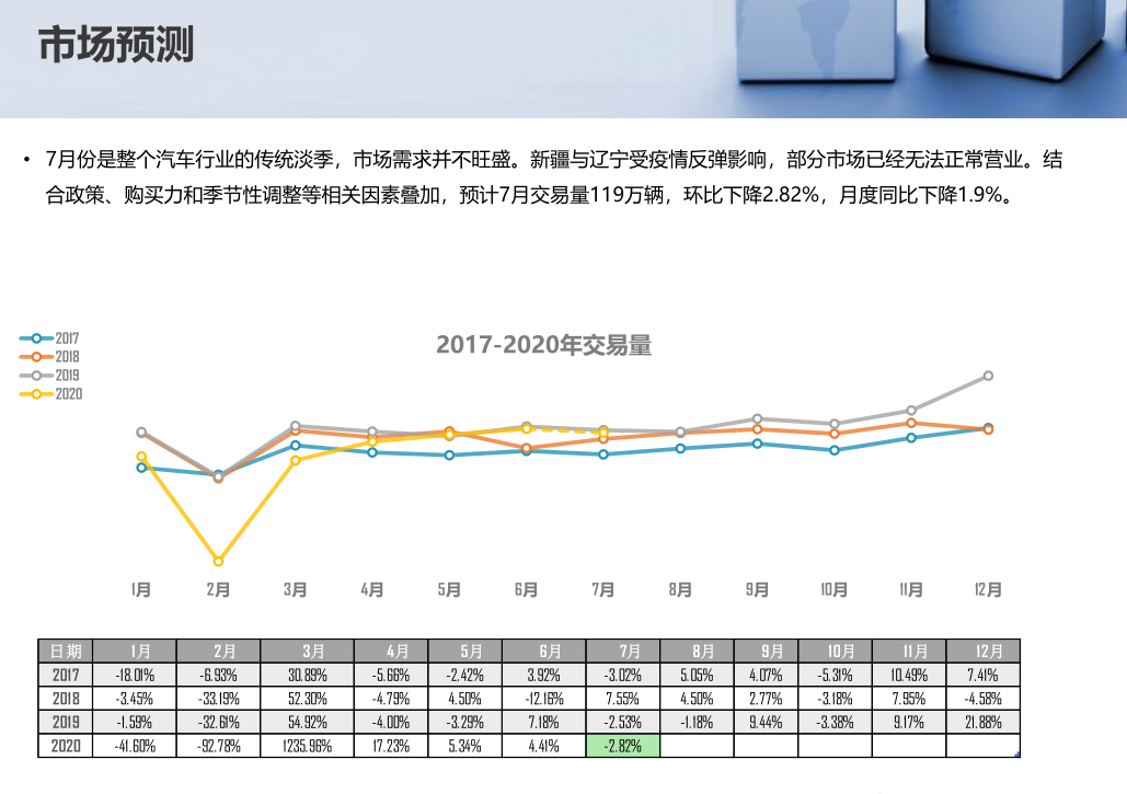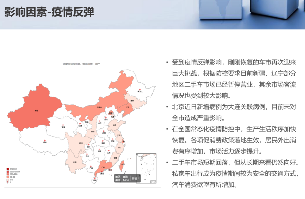 6月全国二手车市场持续回暖,交易量回升。5月的假期与促销活动,提前透支了部分6月的市场份额。北京地区也受到了疫情反弹的一些影响。